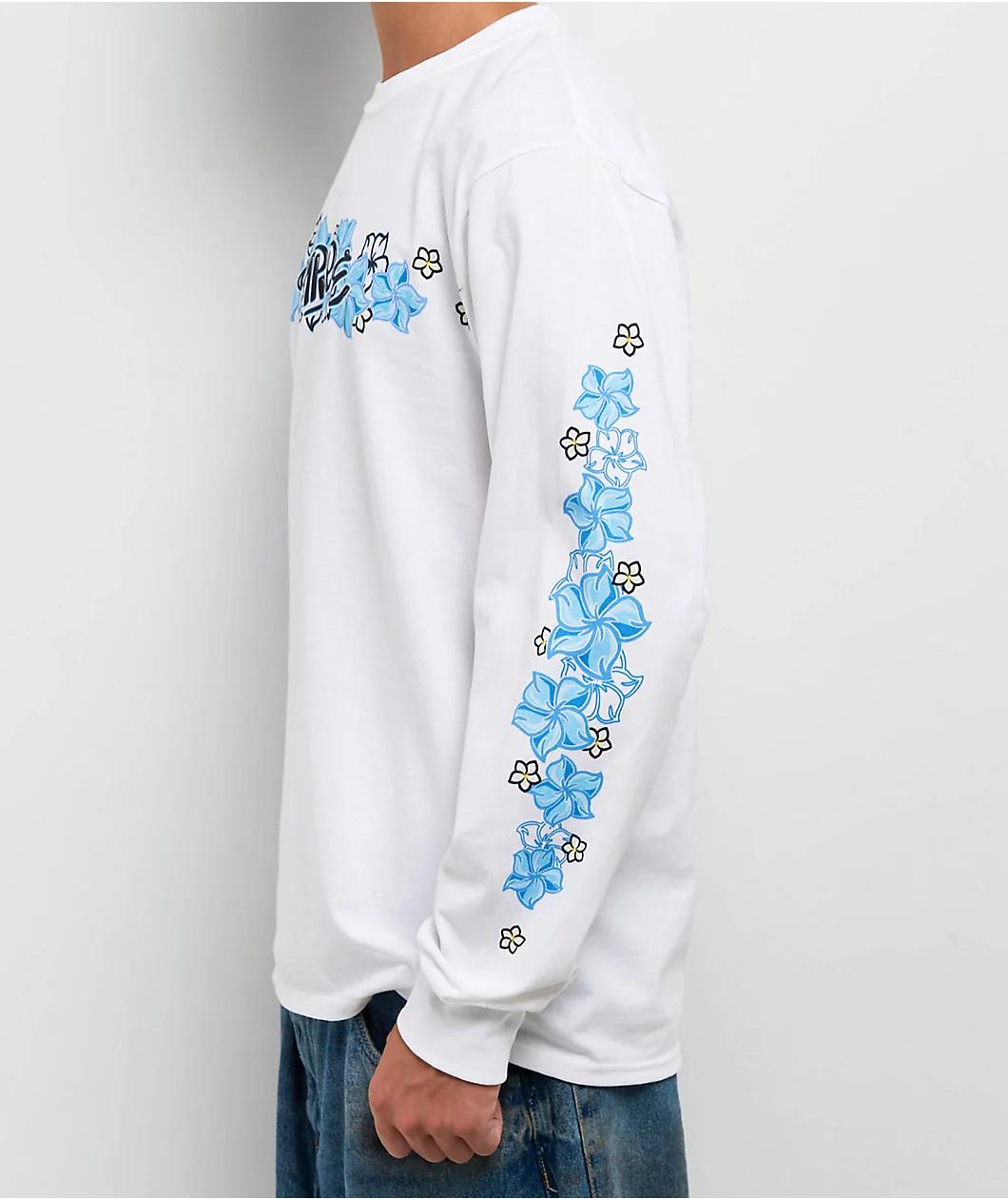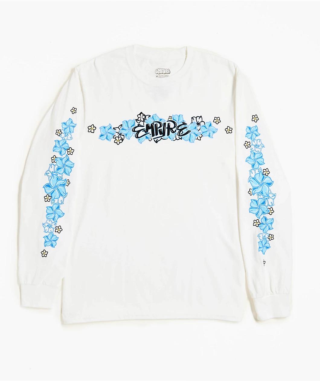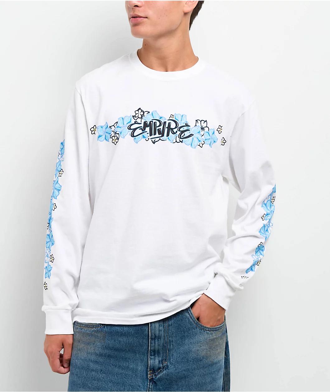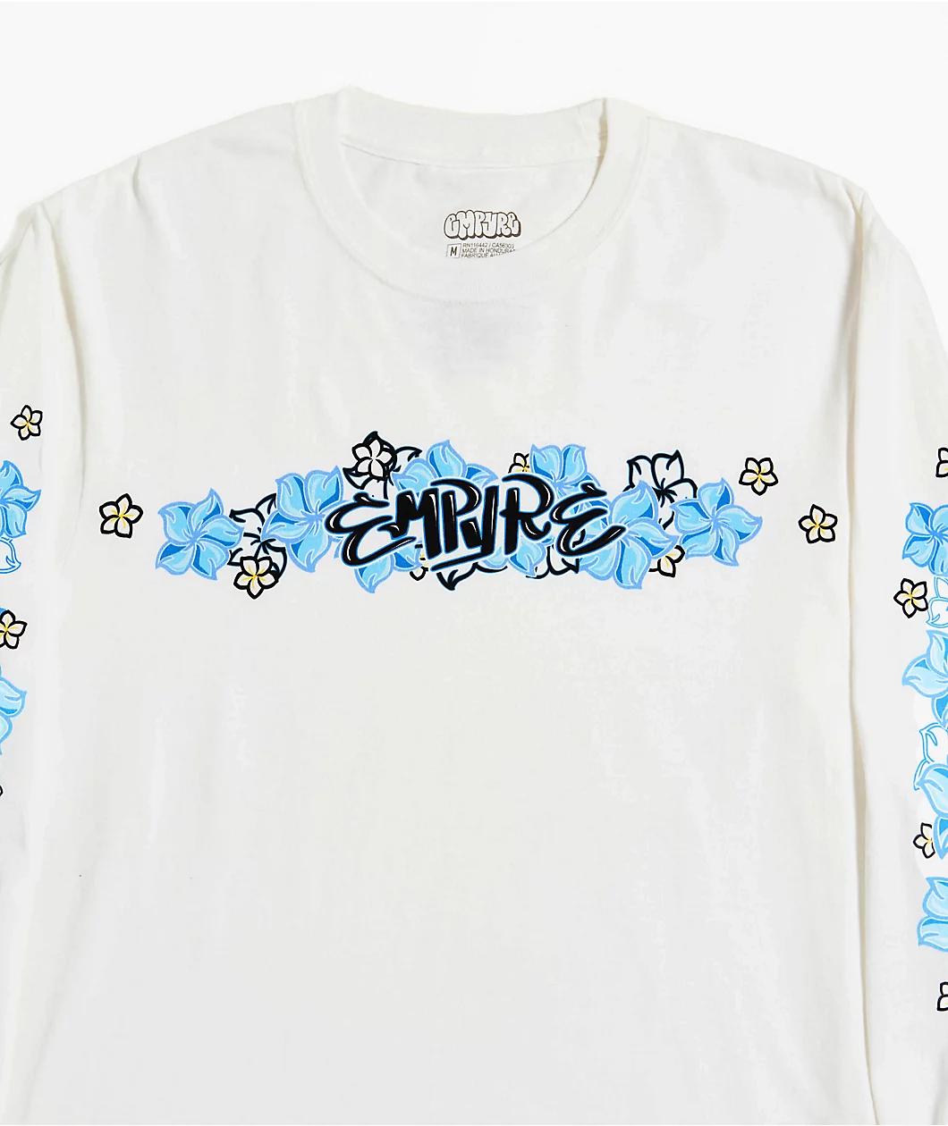 Keep it coastal with the Flowers N Surf Long Sleeve T-Shirt from Empyre. Floral graphics across the chest and sleeves give this white tee a throwback surf vibe, while bold Empyre branding on the front along with ribbed collar and sleeve cuffs add a c