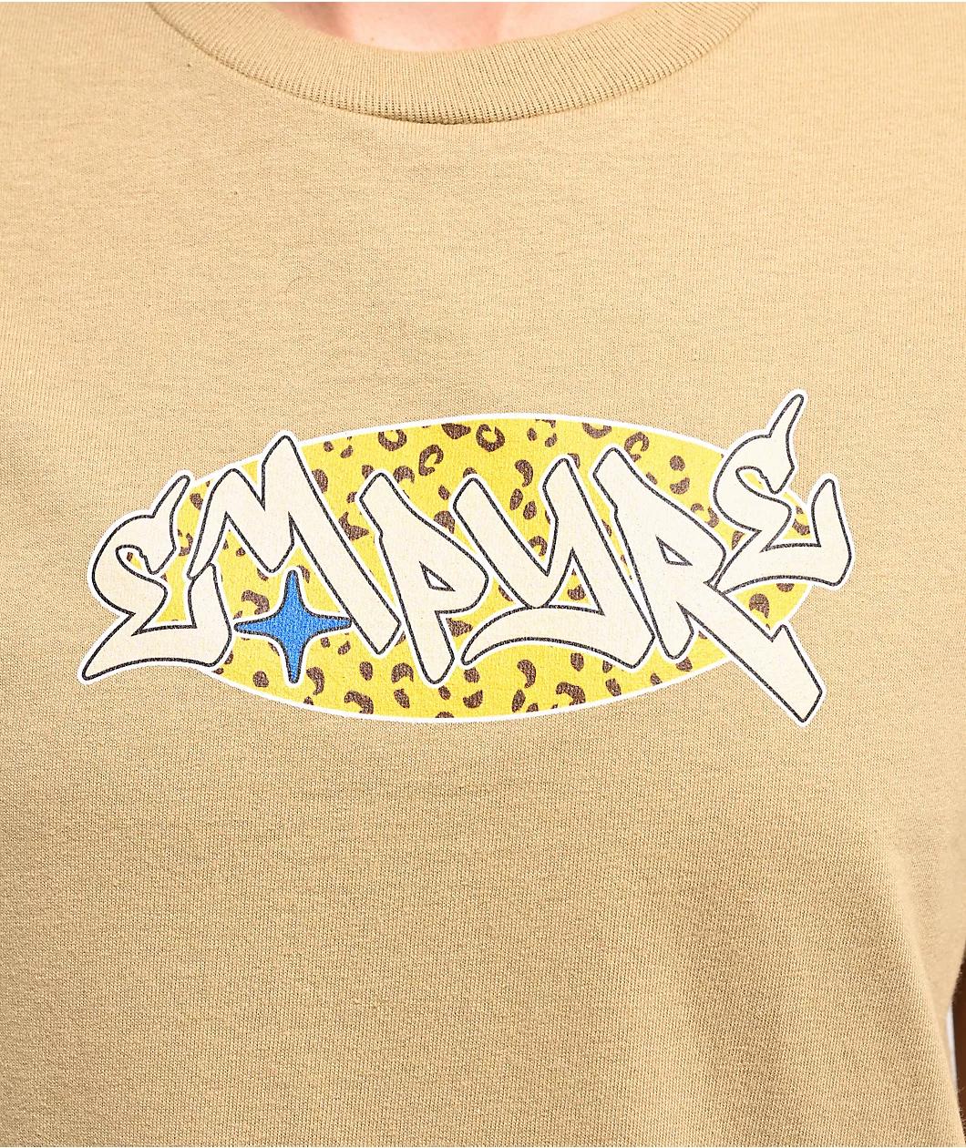 Streetwear brand Empyre welcomes the Leopard Logo t-shirt in a tan colorway with a screen-printed design on the chest. An oval Leopard motif on the tee is decorated with graffiti branding and a blue star for a 2000s vibe. This shirt comes finished wi