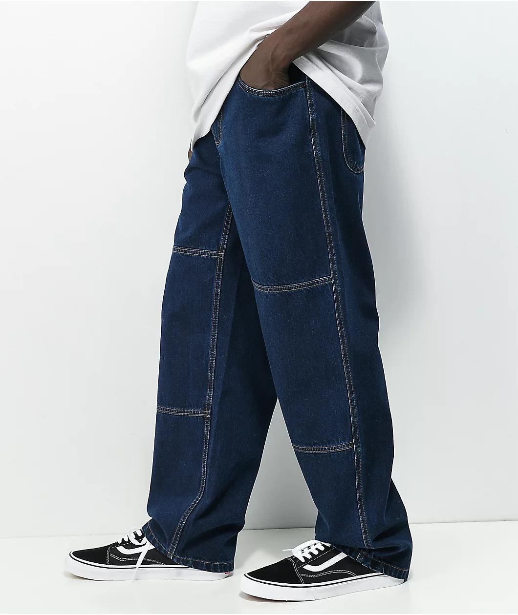 The Empyre Evening loose fit dark blue utility skate jeans have a loose, relaxed fit and a subtle Empyre patch on the left hip for some unmistakable branding. These 100% cotton jeans also have your classic 5-pocket configuration, plus reinforced knees so