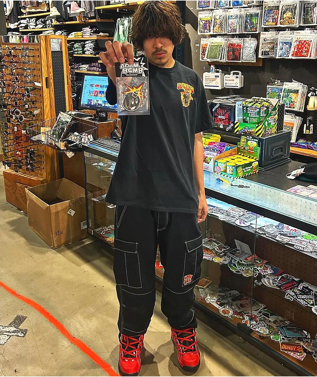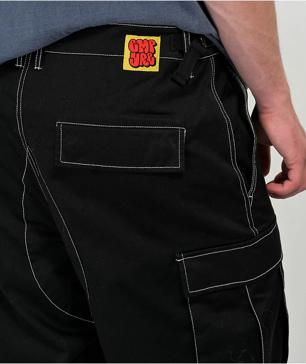 The Empyre Loose Fit cargo pants return in a black colorway, with red logo embroidery along the left thigh. White contrast stitching and cargo pockets along the thighs provide a utilitarian look, while pull tabs along the waist and