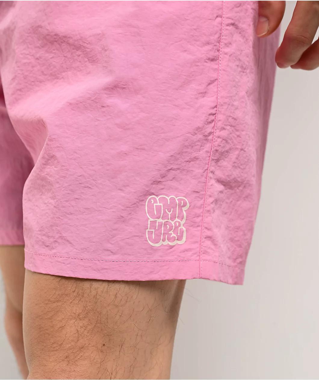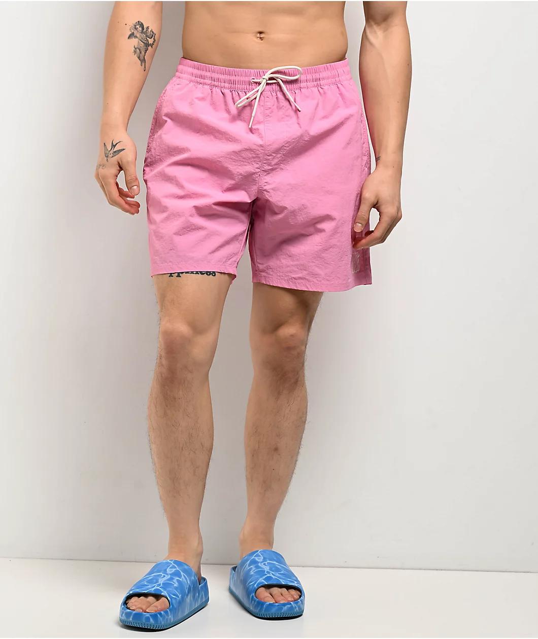Available in a bright pink hue, Empyre offers the Ollie board shorts as vibrant swimwear. Featuring subtle graffiti branding printed near the left leg opening on the front, the lightweight mesh-lined bottoms implement an adjustable drawstring in the