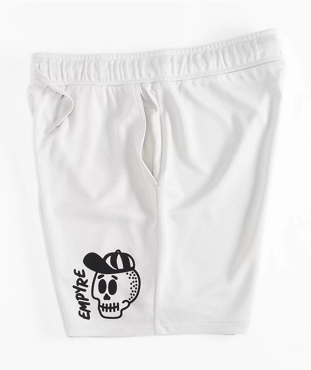 Coming in an off white mesh construction, the Empyre Ready shorts feature an image of a cartoon skull wearing a cap on the left thigh. With Empyre branding beside the graphic, the lightweight mesh shorts are finished with a comfortable drawstring elastic