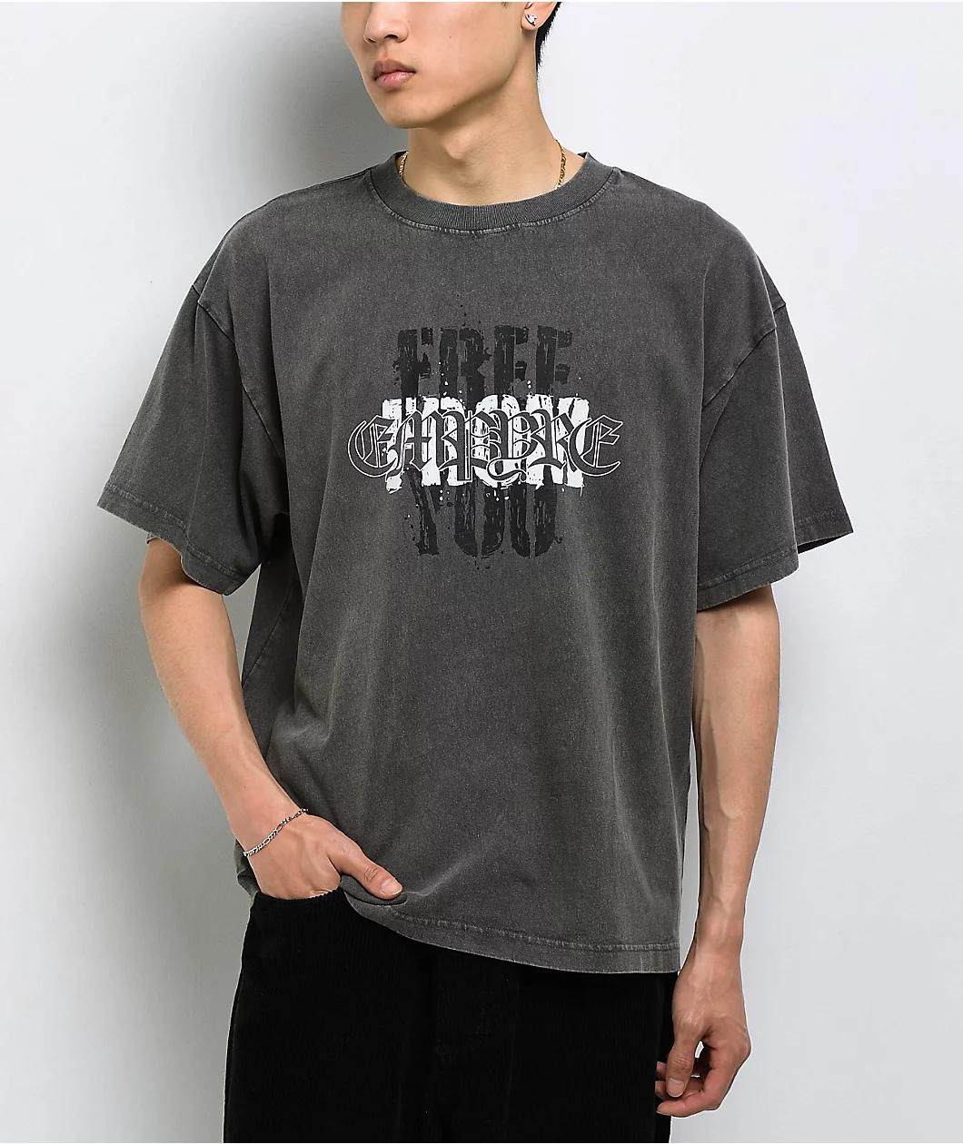 Lending a vintage look with a washed treatment, the grey Scratch t-shirt from Empyre arrives in a 100% cotton construction. Decorated with screen-printed graphics on the front and back, the short sleeve displays the phrase "Free from you" behind Old