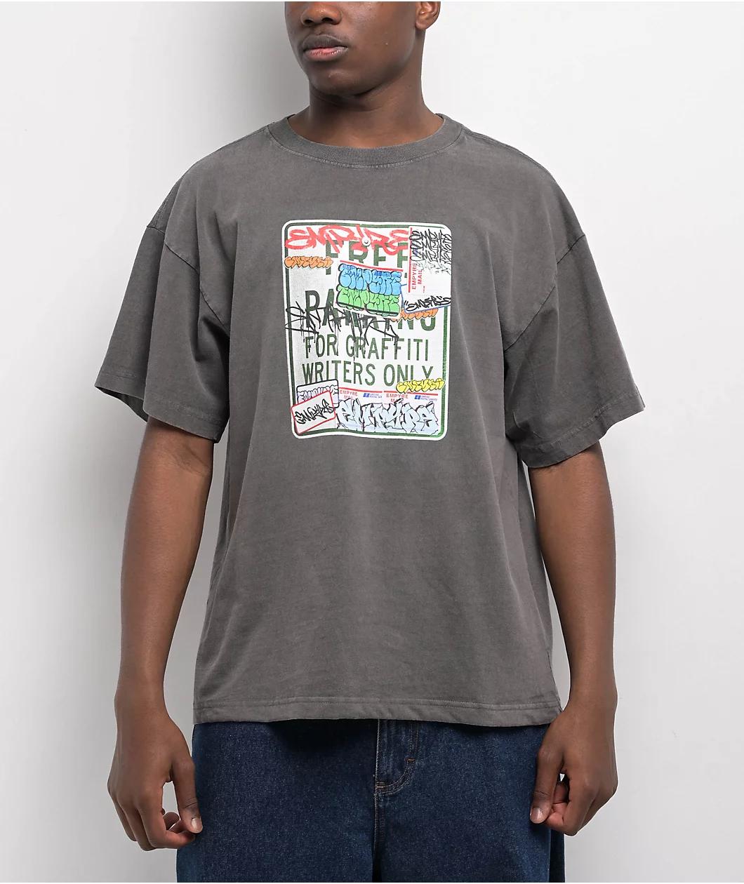 Streetwear brand Empyre welcomes the Tagged Signs t-shirt in a vintage charcoal colorway. Screen-printed on the front of the tee is a parking sign that reads "Free parking for graffiti writers only," Tagged with an array of handstyle artwork. The bac