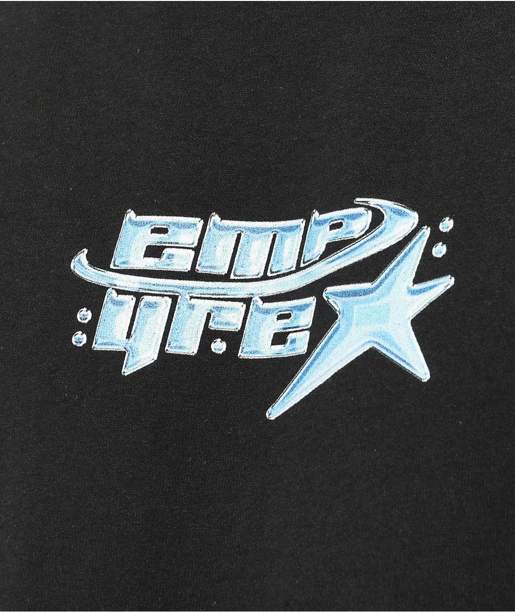 The Y2K Star t-shirt from Empyre comes in a sleek black colorway, showing off the brand name in a metallic accent that stands out. This tee is made from a durable cotton material, offering a relaxed fit for a laid-back look.