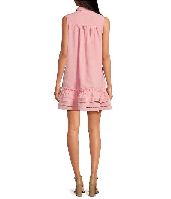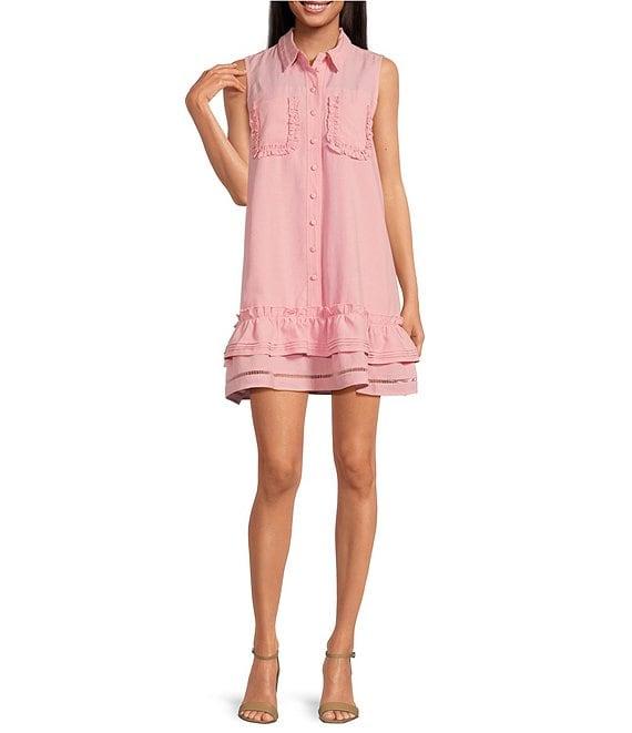 En Saison Bethany Point Collar Button Front Tiered Sleeveless Mini Dress