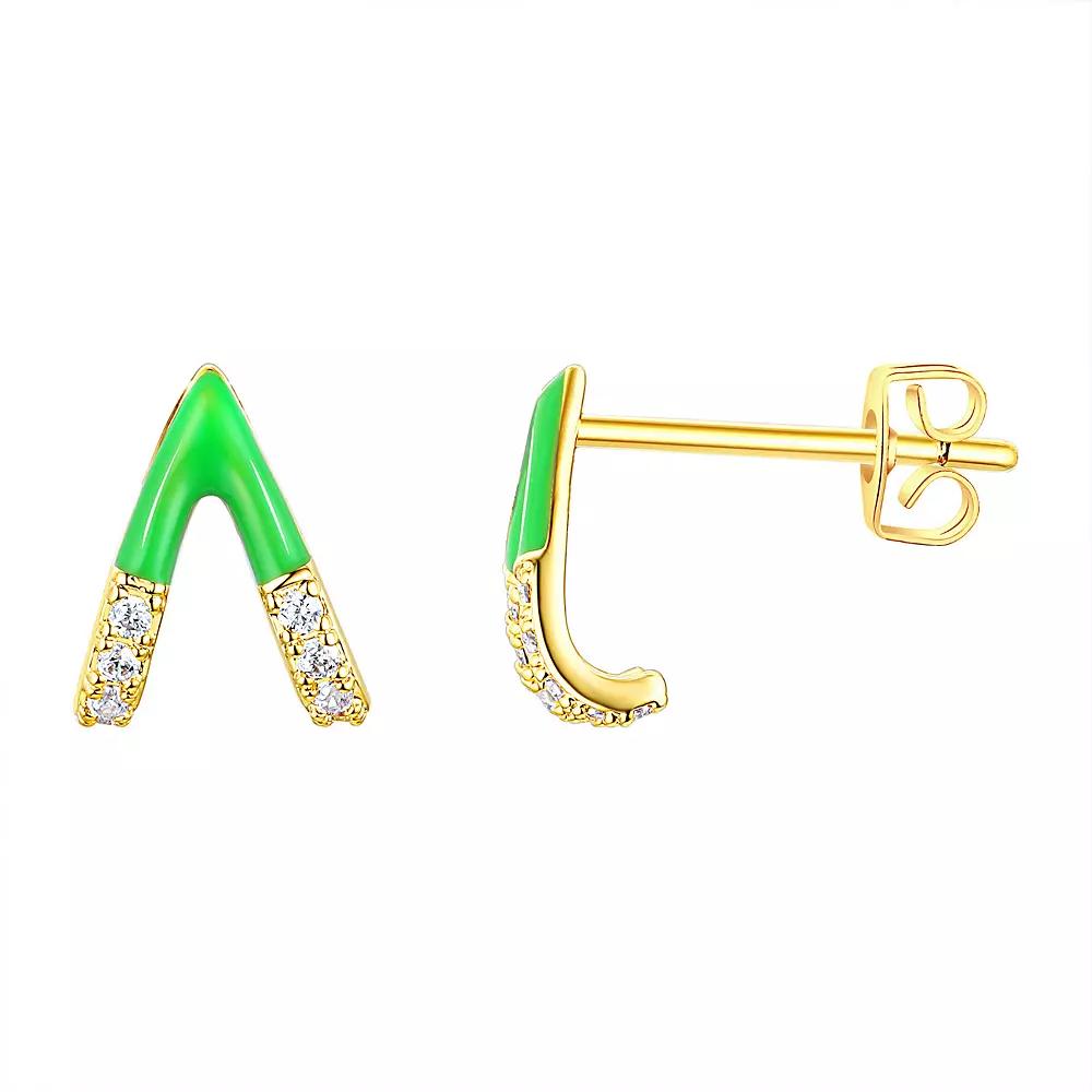 Accent your wardrobe with these Enamorata green enamel and cubic zirconia v-post earrings. Click on this JEWELRY & WATCHES GUIDE to learn about fit, styles, materials and more! Accent your wardrobe with these Enamorata green enamel and cubic zirconia v-post earrings. Click on this JEWELRY & WATCHES GUIDE to learn about fit, styles, materials and more! FEATURES Dimensions: 8 mm x 7 mm Backings: post Nickel free Metal: brass Plating: 14k gold flash plated Finish: polished Packaging: boxedSTONE DETAILS Stone type: cubic zirconia Stone size: 1 mm x 1 mm Shape: round Setting: prong Gemstones may have been treated to enhance their appearance. Special care may be required. Please visit our Gemstone Treatment & Special Care Guide for more information. Gender: female. Age Group: adult. Material: Gold Plate.