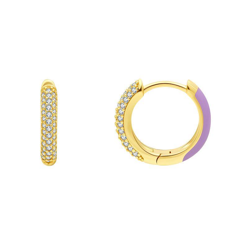 Accent your wardrobe with these Enamorata purple enamel and cubic zirconia huggie hoop earrings. Click on this JEWELRY & WATCHES GUIDE to learn about fit, styles, materials and more! Accent your wardrobe with these Enamorata purple enamel and cubic zirconia huggie hoop earrings. Click on this JEWELRY & WATCHES GUIDE to learn about fit, styles, materials and more! FEATURES Dimensions: 15 mm x 3 mm Backings: click-it Nickel free Metal: brass Plating: 14k gold flash plated Finish: polished Packaging: boxedSTONE DETAILS Stone type: cubic zirconia Stone size: 1 mm x 1 mm Shape: round Setting: prong Gemstones may have been treated to enhance their appearance. Special care may be required. Please visit our Gemstone Treatment & Special Care Guide for more information. Gender: female. Age Group: adult. Material: Gold Plate.