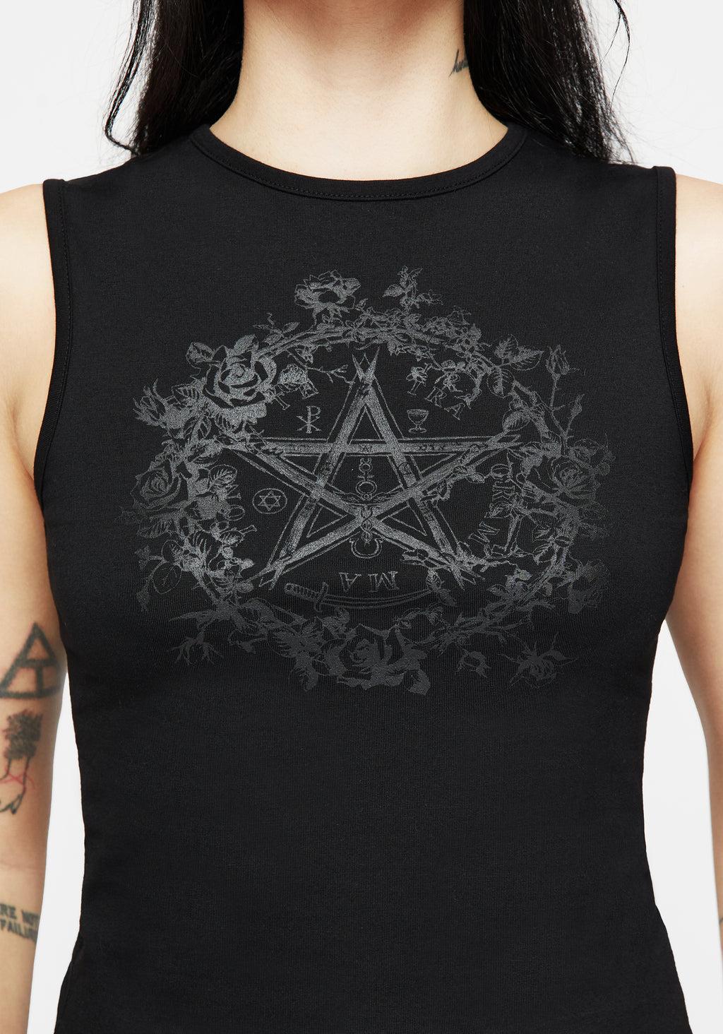 Black Cotton Graphic Printed Sleeveless Top
