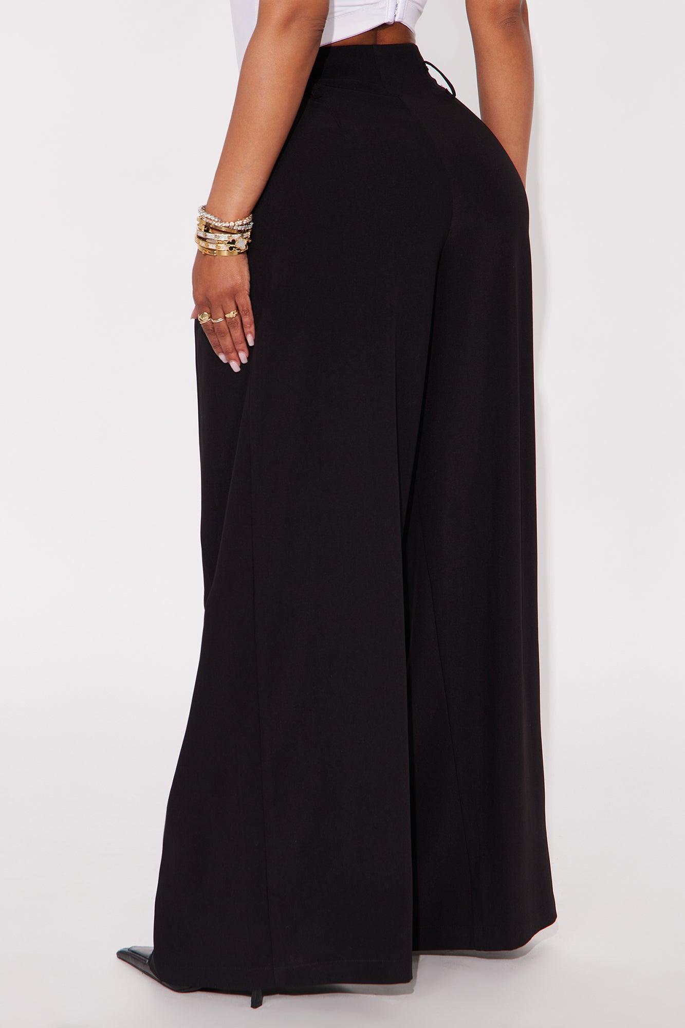 End Of Time Wide Leg Belted Trousers 33″ - Black Female