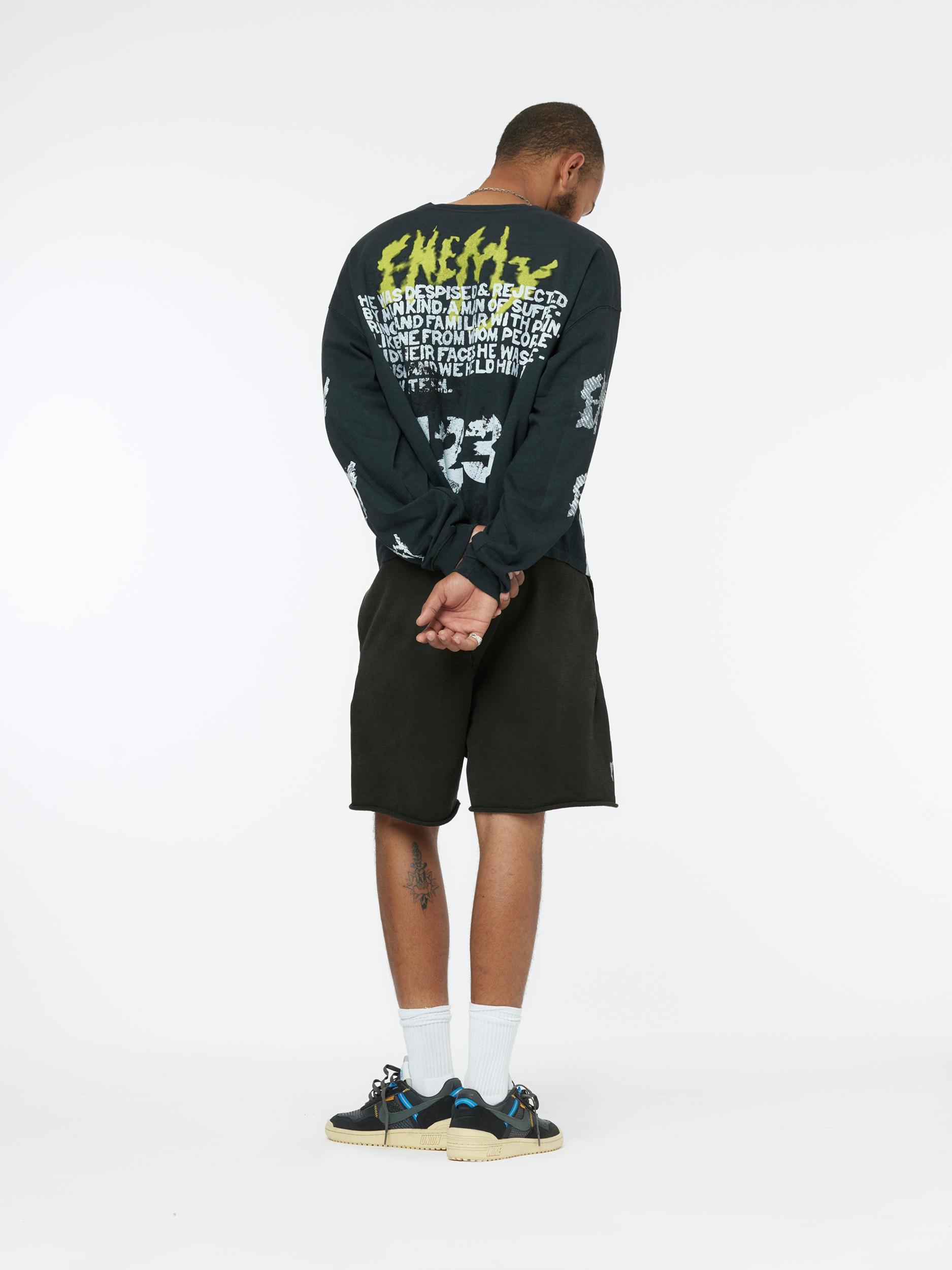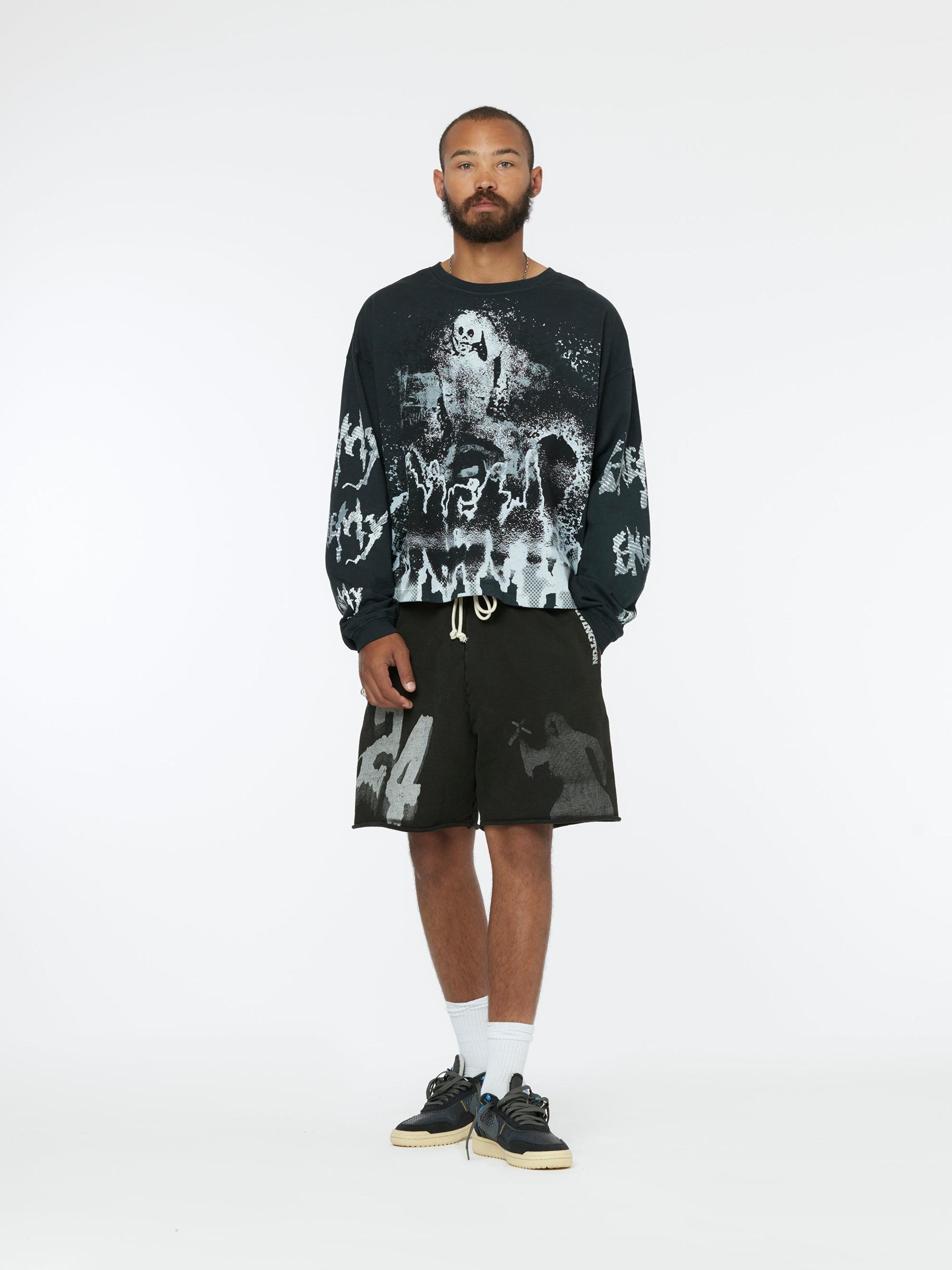 - FRENCH TERRY- ACRYLIC SCREEN PRINT- HEAVY STONE WASH- 100 COTTON- MADE IN LOS ANGELES EACH HANDMADE ITEM CARRIES WITH IT A CHARACTER OF ITS OWN. ALLOW FOR THE INDIVIDUALITY OF YOUR PIECE TO BE A VIRTUE, NOT A FLAW. ALL COLOR FADES, TEARS, RIPS, DISCOLORATION, DISTRESSING OF FABRICS AND CONSTRUCTION ARE INTENTIONAL.