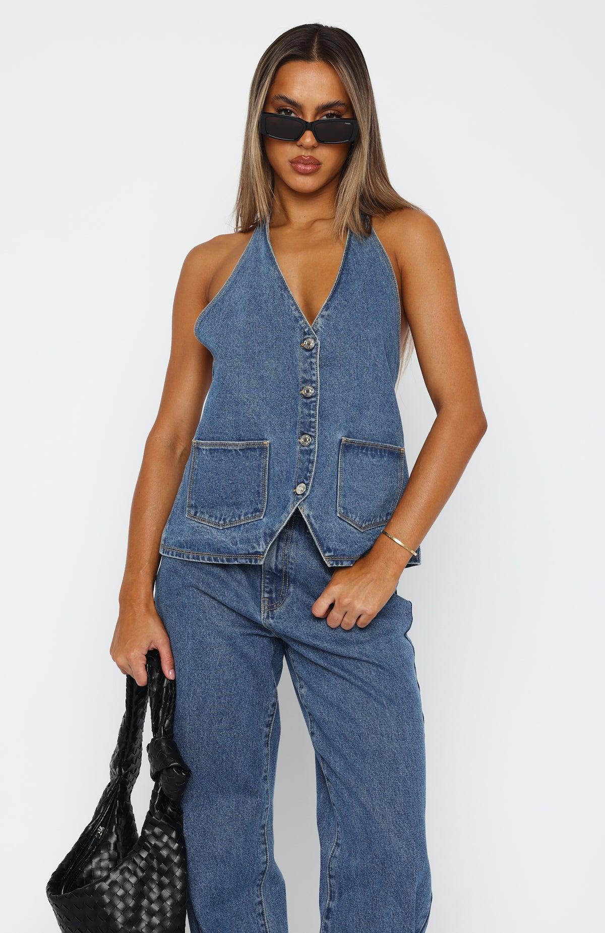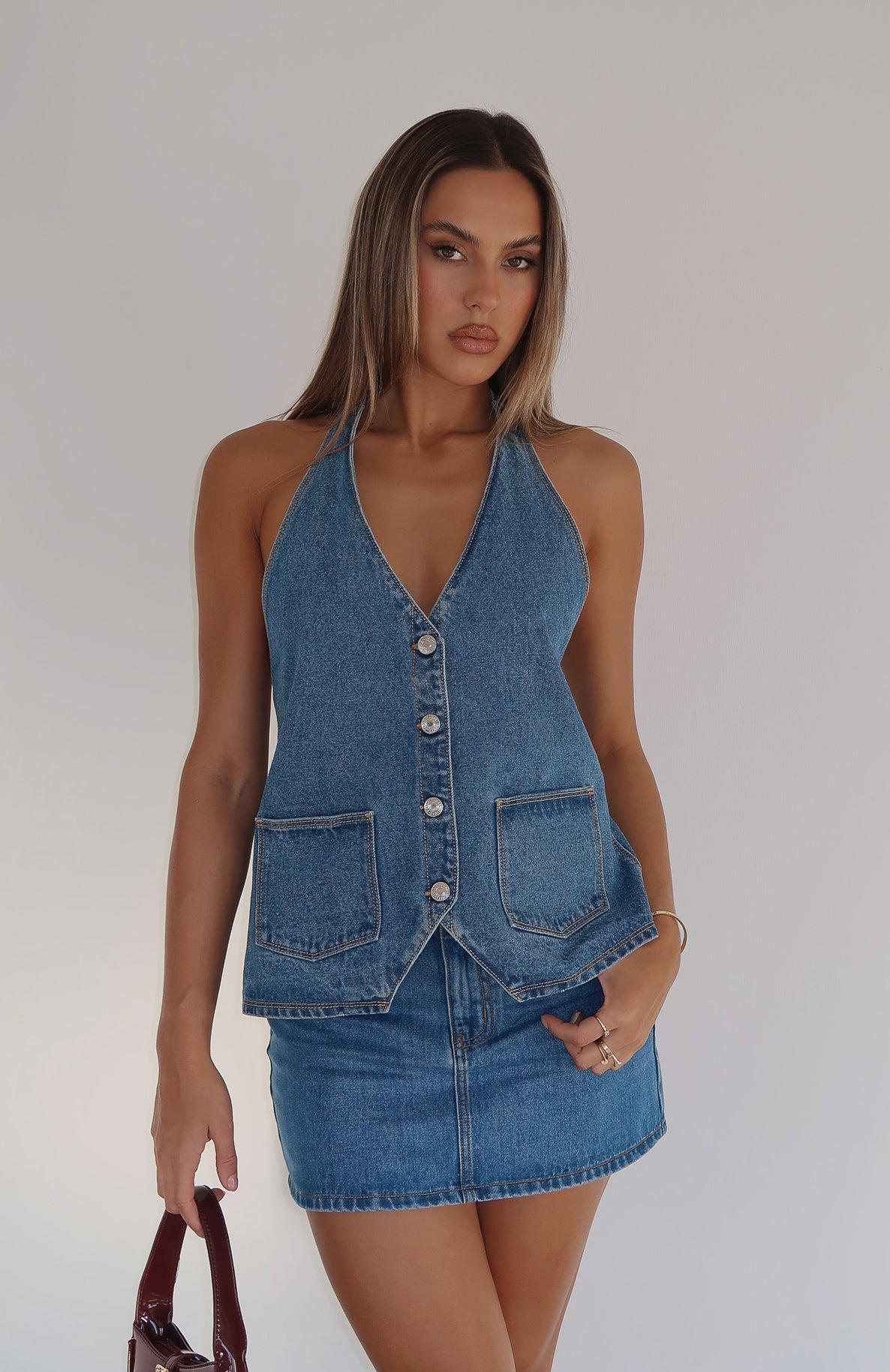 WHITE FOX DENIM The set of our denim dreams! The Energy Balance Top Admiral Blue features a halter style neckline with self-tie straps, plunge v-neckline, button through front design, denim fabric, sleeveless, open back design, tie fastening closure at back and front pockets. Pair with the matching Momentum Mid Rise Straight Leg Jean or the Holla At Me Mini Skirt for a look we're loving right now! 100% Cotton Mik is 171cm & is wearing a S Please note this style is a relaxed fit, we recommend to size down if you require a more tailored fit. Due to the nature of denim, washes will vary per individual garment. Colour fade/ transfer naturally occurs but will ease over time as the garment wears. We recommend washing your denim inside out, in cold water. AS SEEN ON... @ABBIEXHOOPER