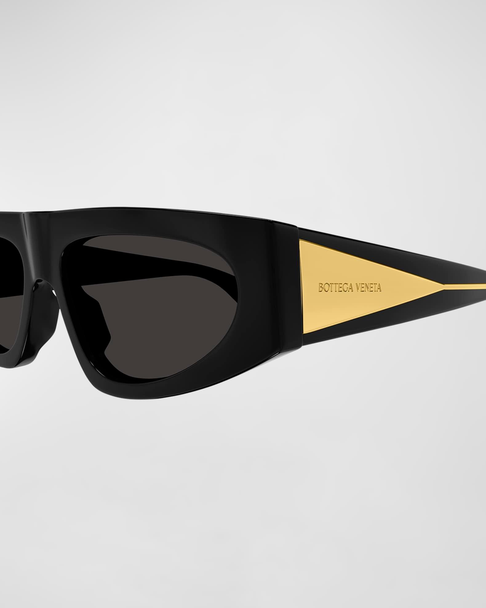 Bottega Veneta "BV1277S" flat-top rectangle sunglasses in acetate Lens/bridge/temple (in mm): 57-17-140 Solid lenses Saddle nose bridge Engraved logo on temples Wide, tapered arms 100% UVA/UVB protection Made in Italy Proposition 65 warning for California residents
