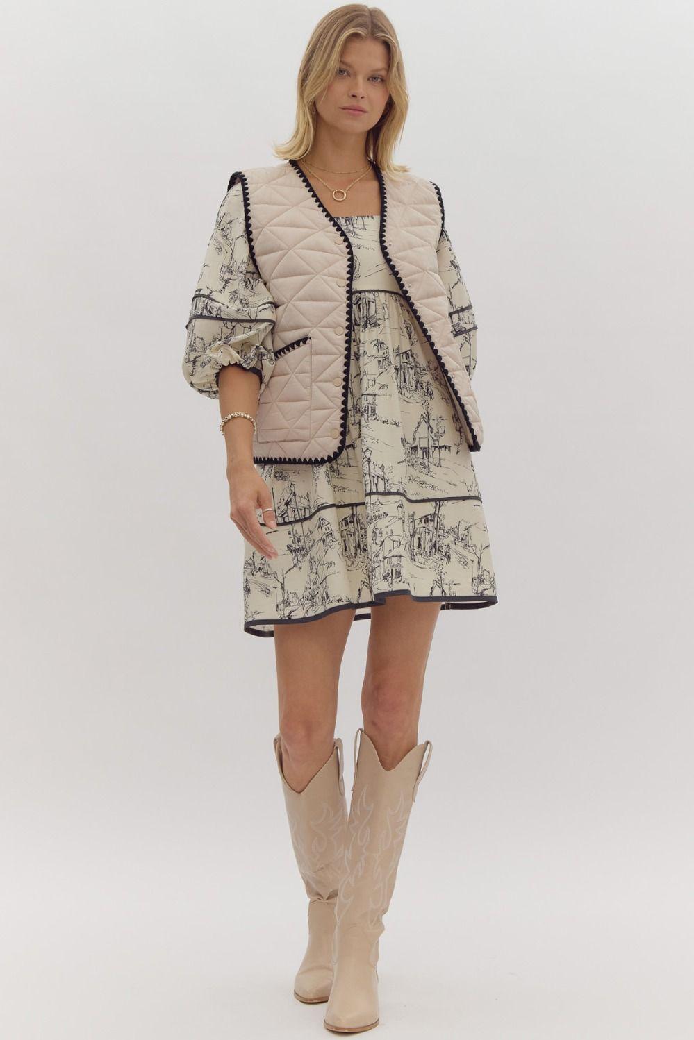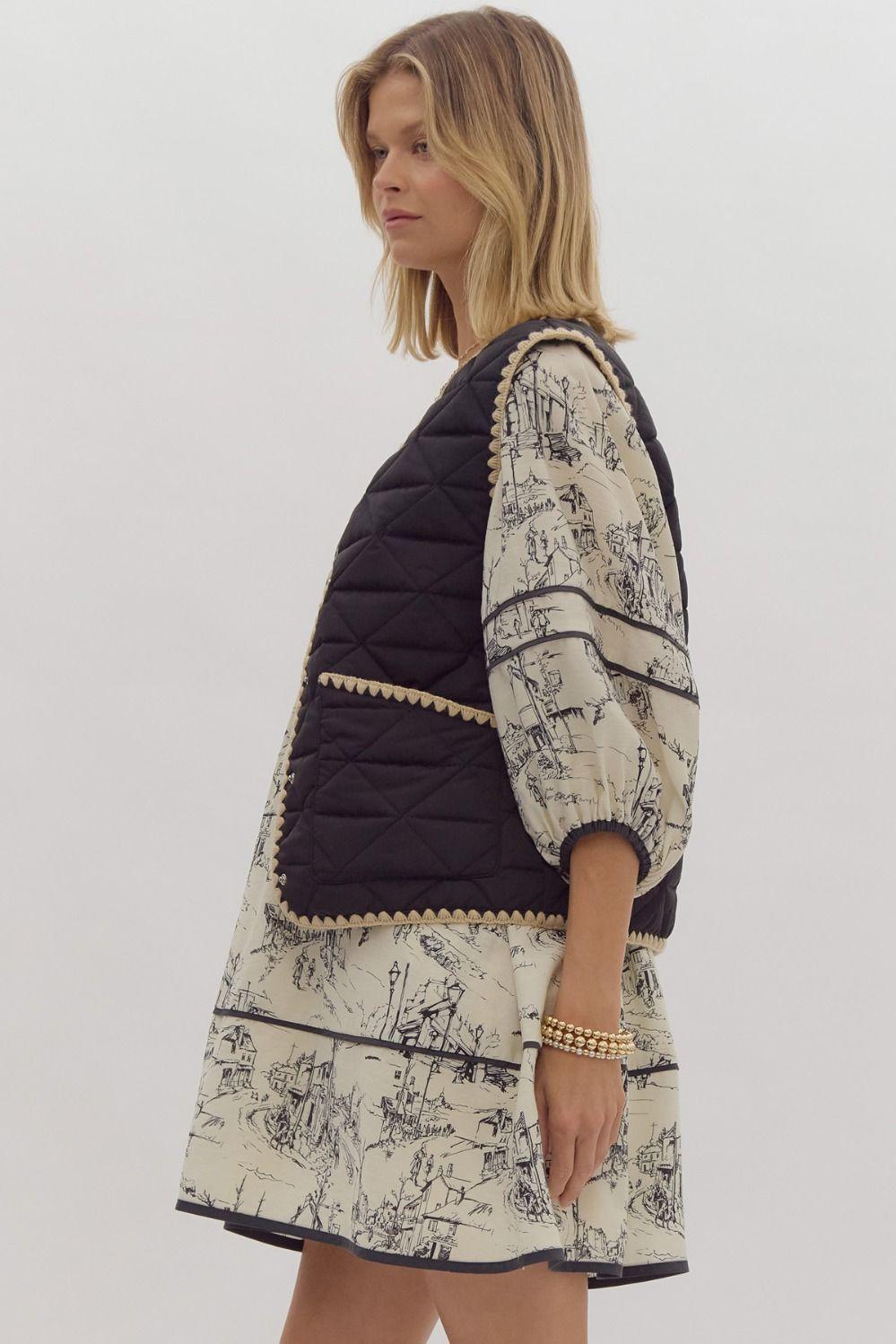 Stay warm and stylish with our Enjoy the Ride Vest. This solid quilted vest features snap button closures and front pockets for convenience. The contrasting scalloped trim adds a unique touch, making this a must-have for chilly days. Lightweight and non-sheer, this vest is perfect for any adventure. Enjoy the ride, in style!