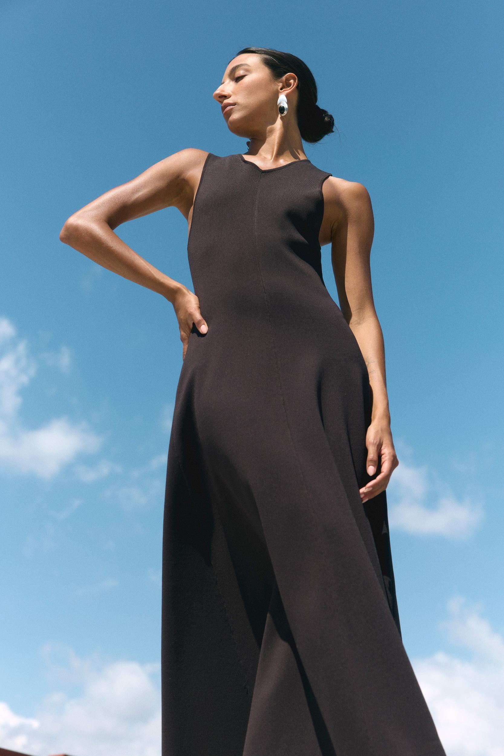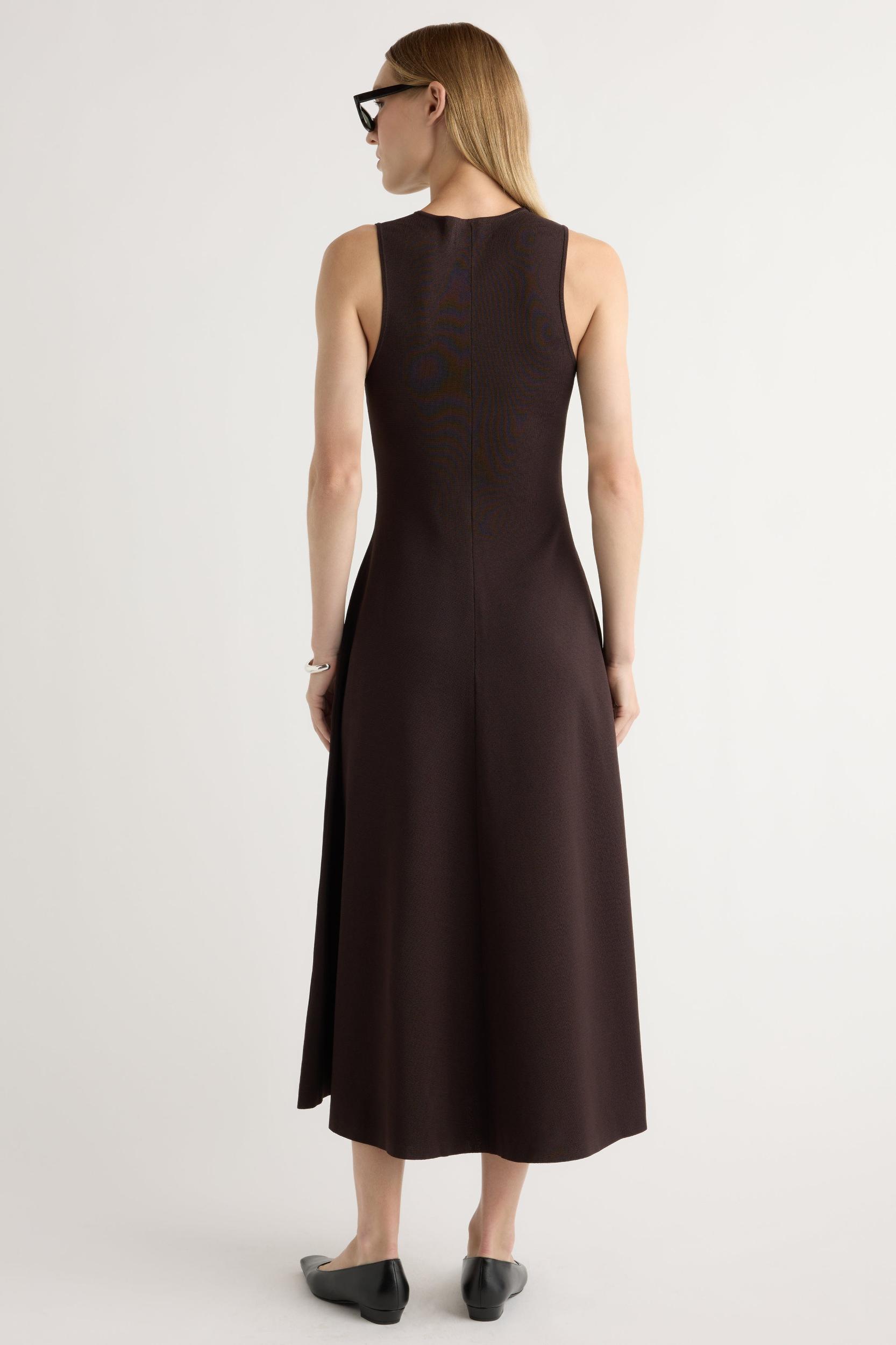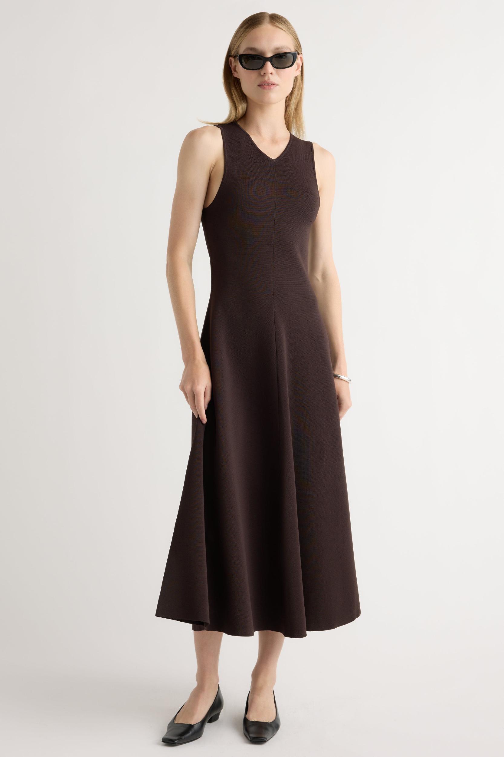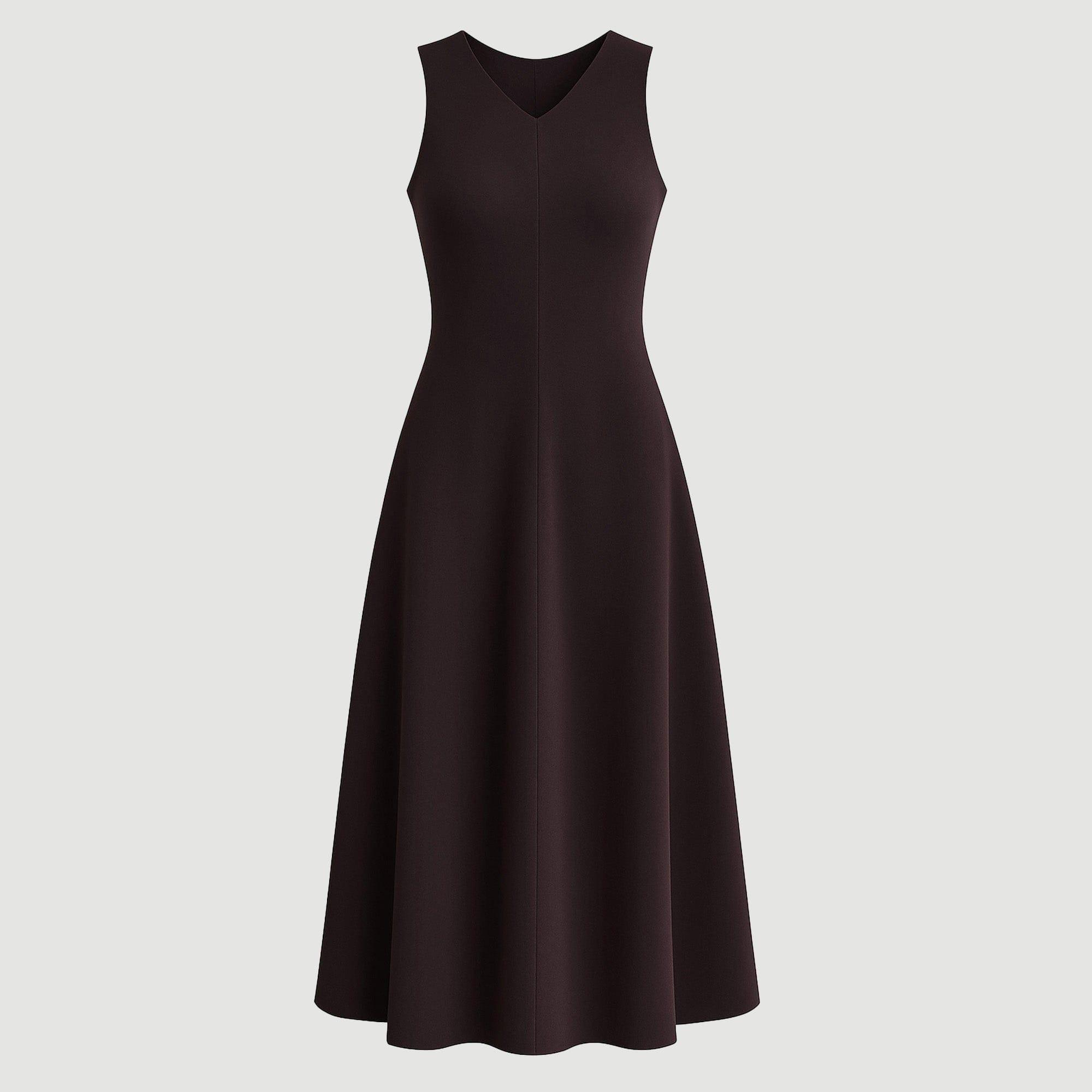 A sculptural, refined take on the classic A-line silhouette — Enya features a sleeveless V-neck bodice and a softly draped skirt for an effortless blend of polish and comfort