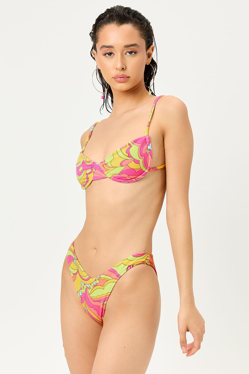 A fan favorite, the Enzo. A terry bikini built with our classic cheeky bikini bottom coverage. Designed with an on trend v-silhouette that flatters all curves, this bikini bottom has no competition. Built for it all, the Enzo is now made in our signature terry fabric. Fabric Fabric Content: 94% Nylon + 6% Spandex Made in Italy Terry Fabric Cheeky Coverage This style runs true to size Model Size & Fit Bella is wearing a size Small Height 5’8” (173cm) Bust 32” (76cm), Waist 23” (66cm), Hips 35.5” (86cm) Leslie is wearing a size X-Large Height 5’7” (170cm) Bust 38” (97cm), Waist 29” (74cm), Hips 47” (119cm)