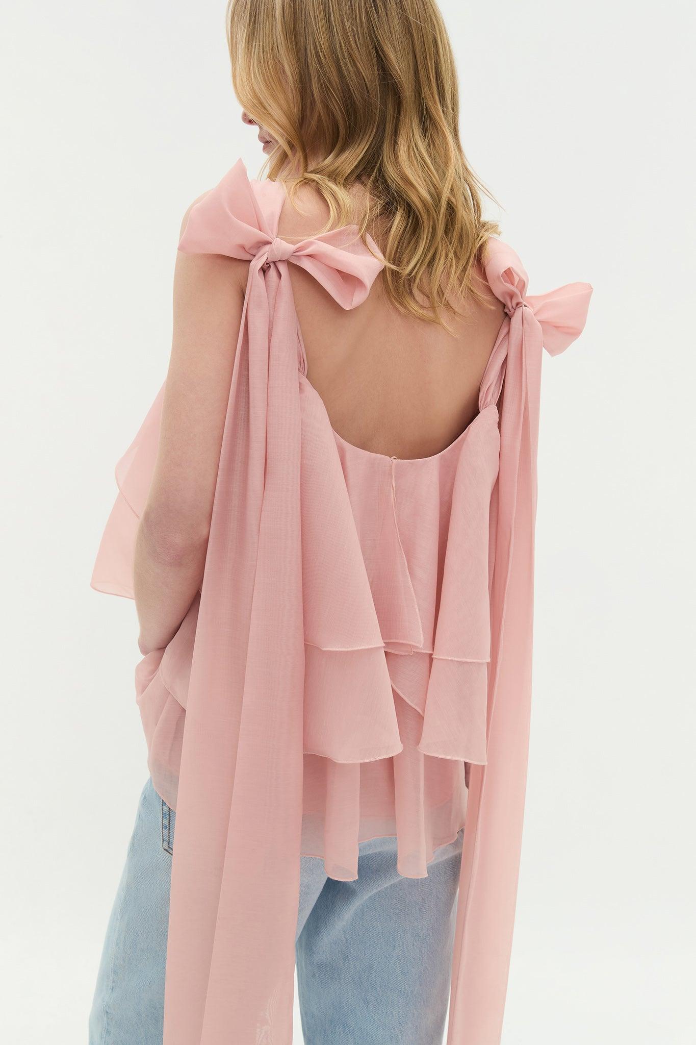 PRODUCT DETAILS Women's top Voluminous silhouette Gathered tie straps Layered ruffles throughout Zip, hook and eye closure Lined style 100% Polyester Dry Clean Only Shop All Tops SIZE AND FIT Model wears a size AU 8/S Height: 177cm/5'10 Bust: 82cm Waist: 63m Hips: 86cm