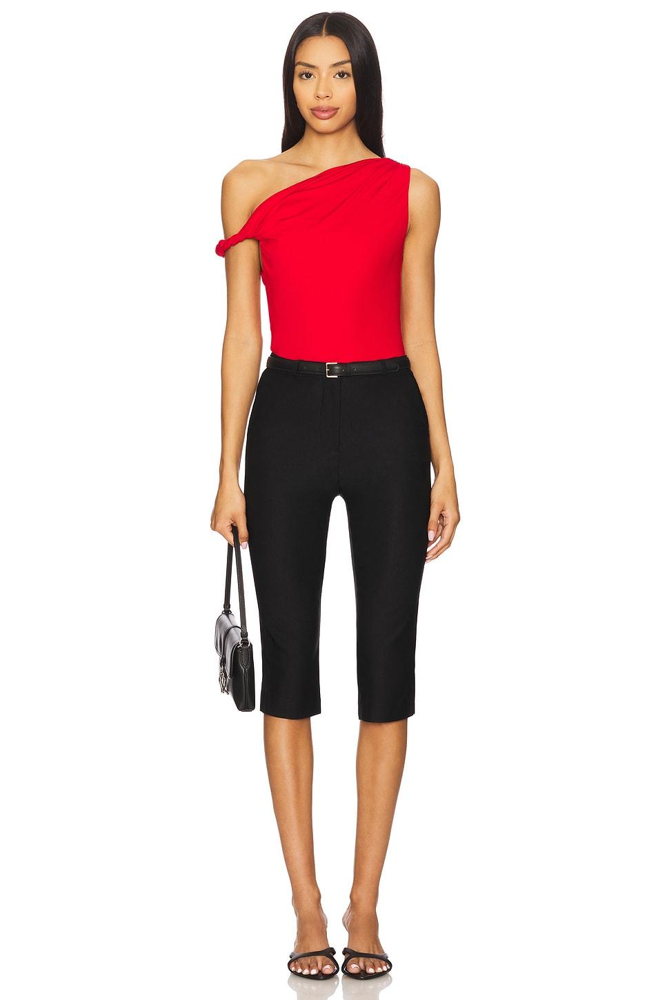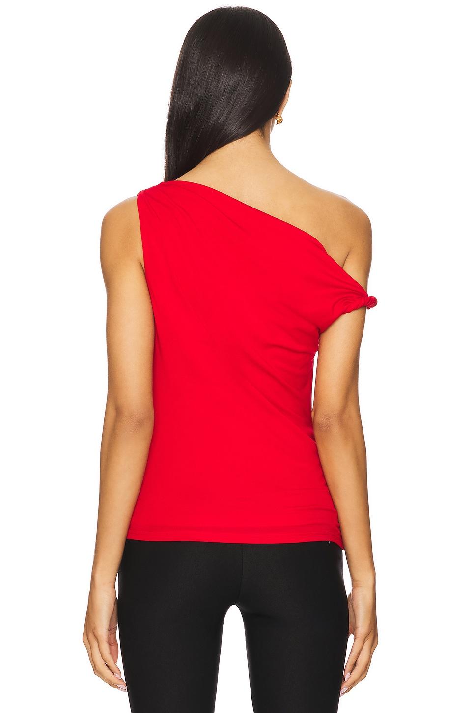 92% lyocell, 8% spandex. Dry clean only. One-shoulder styling. Twisted strap detail. Midweight jersey fabric. Made in China. Revolve Style No. LEAX-WS378. Manufacturer Style No. LT5874L.