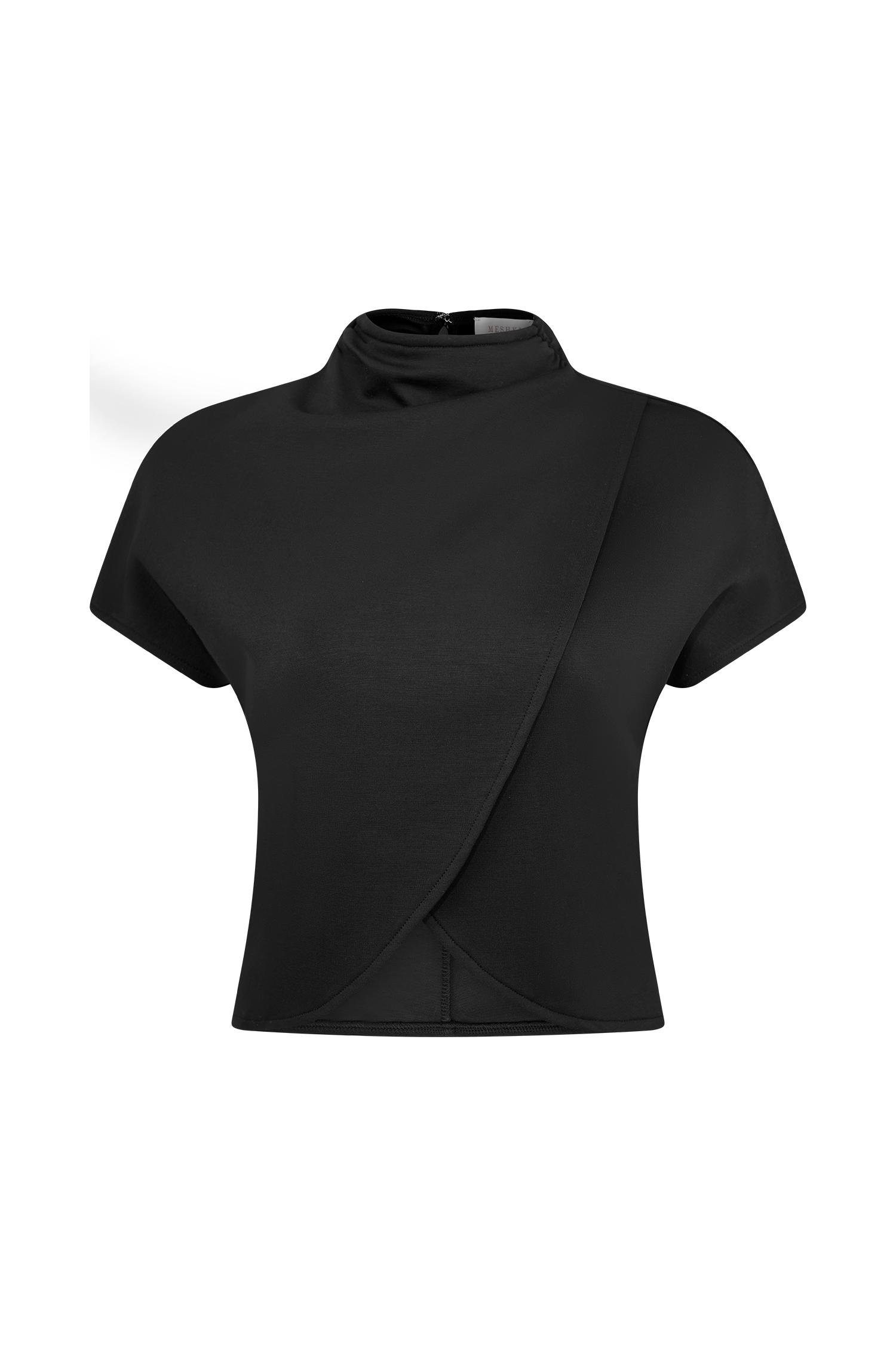 Sleek & chic. The ERIS High Neck Scuba Jersey Top combines modern style with exceptional comfort. Featuring a high neckline and short sleeves, this top offers a sleek and sophisticated silhouette. Designed with a relaxed fit, it drapes effortlessly over the body for all-day ease. The drapey overlay detail creates a flattering flow, while the rounded hemline adds a soft, relaxed finish. A back zip closure ensures a secure fit, and the thick jersey fabrication offers both structure and comfort. Pair it with the Eris Scuba Jersey Maxi Skirt for a polished, coordinated look perfect for any occasion.