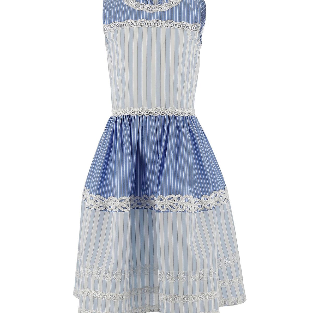 •LOOK: A beautiful summer dress by Ermanno Scervino. Sleeveless style with dainty lace appliqués used to separate the different yet complementary patterns. Hidden back zipper. An amazing and unique a-line styled cotton dress for a special summer occasion.