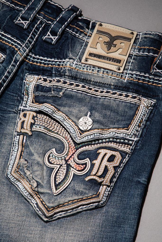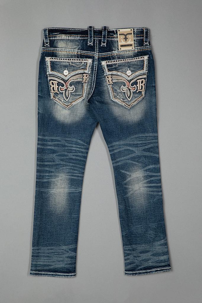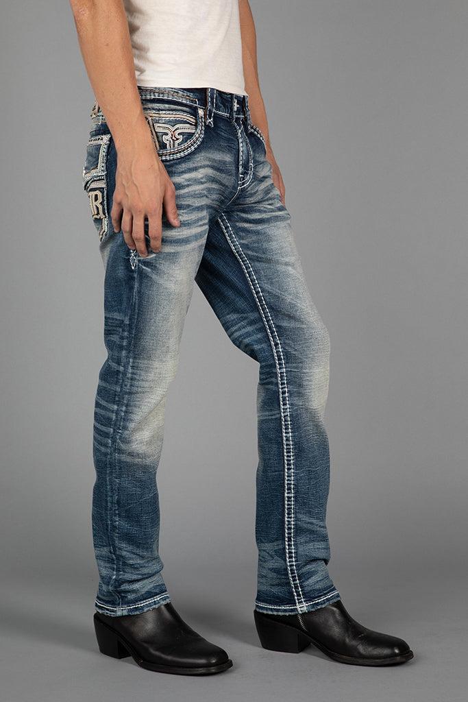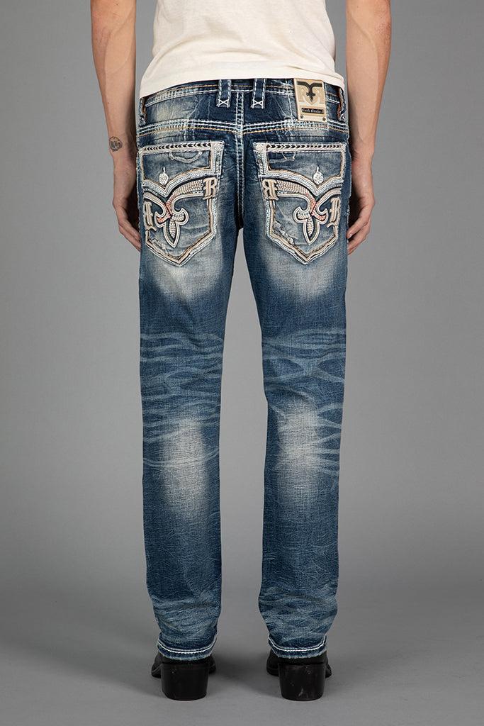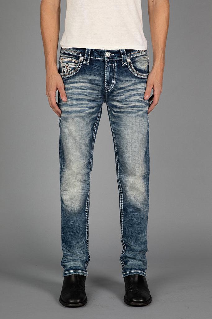 Ermias Straight Jeans by Rock Revival with a straight silhouette crafted in a medium wash, designed in Los Angeles.