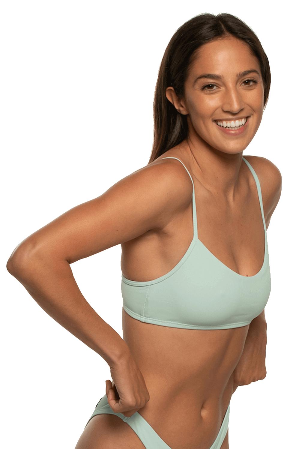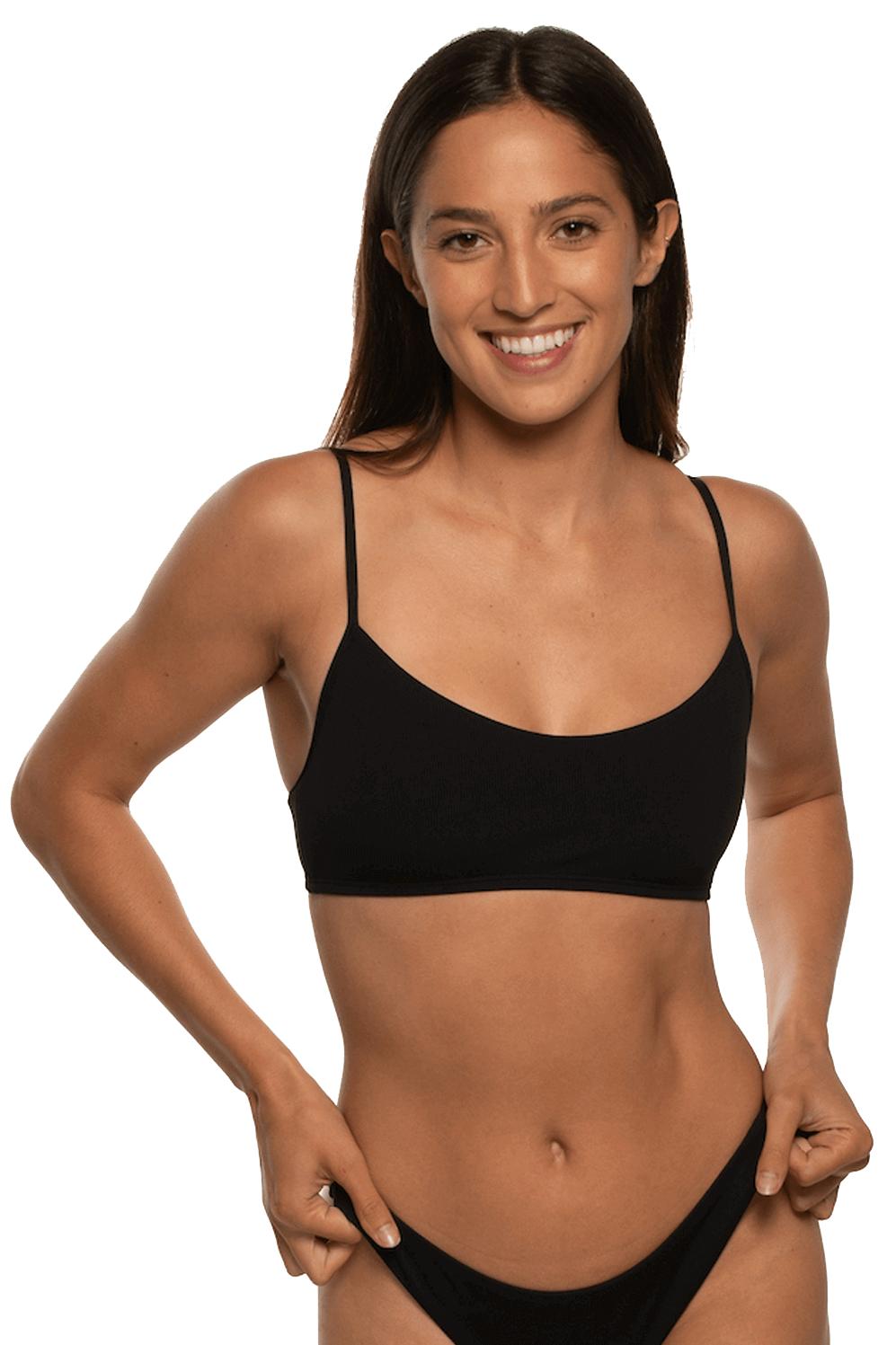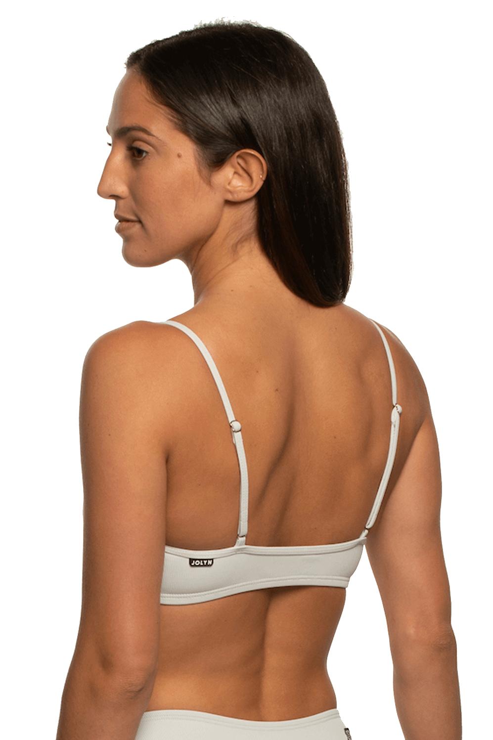 Eryn loves this surf tested, scoop-neck bikini top for getting out in the waves. Wear this surfing bikini top in the water or double it as a bra, thanks to clean finishes, adjustable straps, and our buttery soft ribbed fabric. Get active and stay stylish during all the sunny beach days and big waves ahead. "The Alanna high waisted bottoms with the Eryn top are definitely my go-to for bigger wave scenarios" Features: Eryn Krouse x JOLYN Good for: surfing, longboarding, paddling, lifestyle Adjustable with metal sliders Lined + unpadded Medium impact Tagless for maximum comfort True to size Fabric Composition: Ribbed fabric Shell: 92% Nylon 8% Elastane Liner: 80% Nylon 20% Elastane Care Instructions: Hand wash cold Hang dry Do not iron, dry clean or bleach