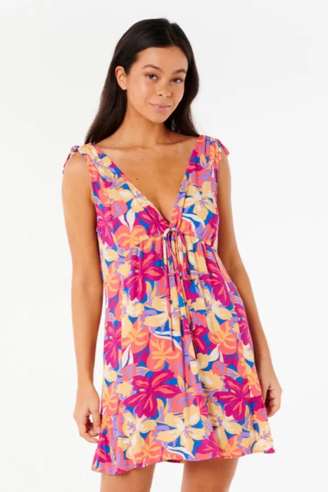 Es Vedra Cover Up Composition: 100% Viscose Lenzing™ Ecovero™ Crinkle 145G Standard fit All over yardage print Functional front tie Functional shoulder tie detail