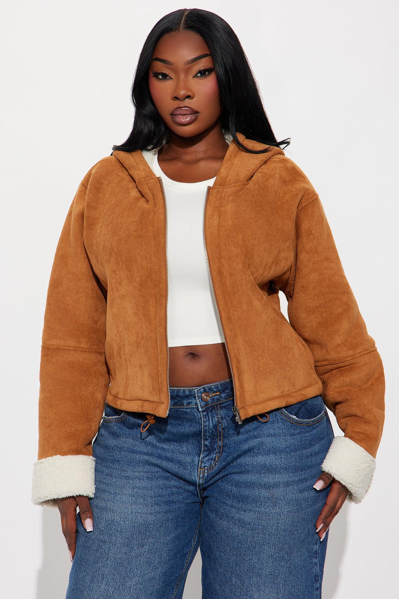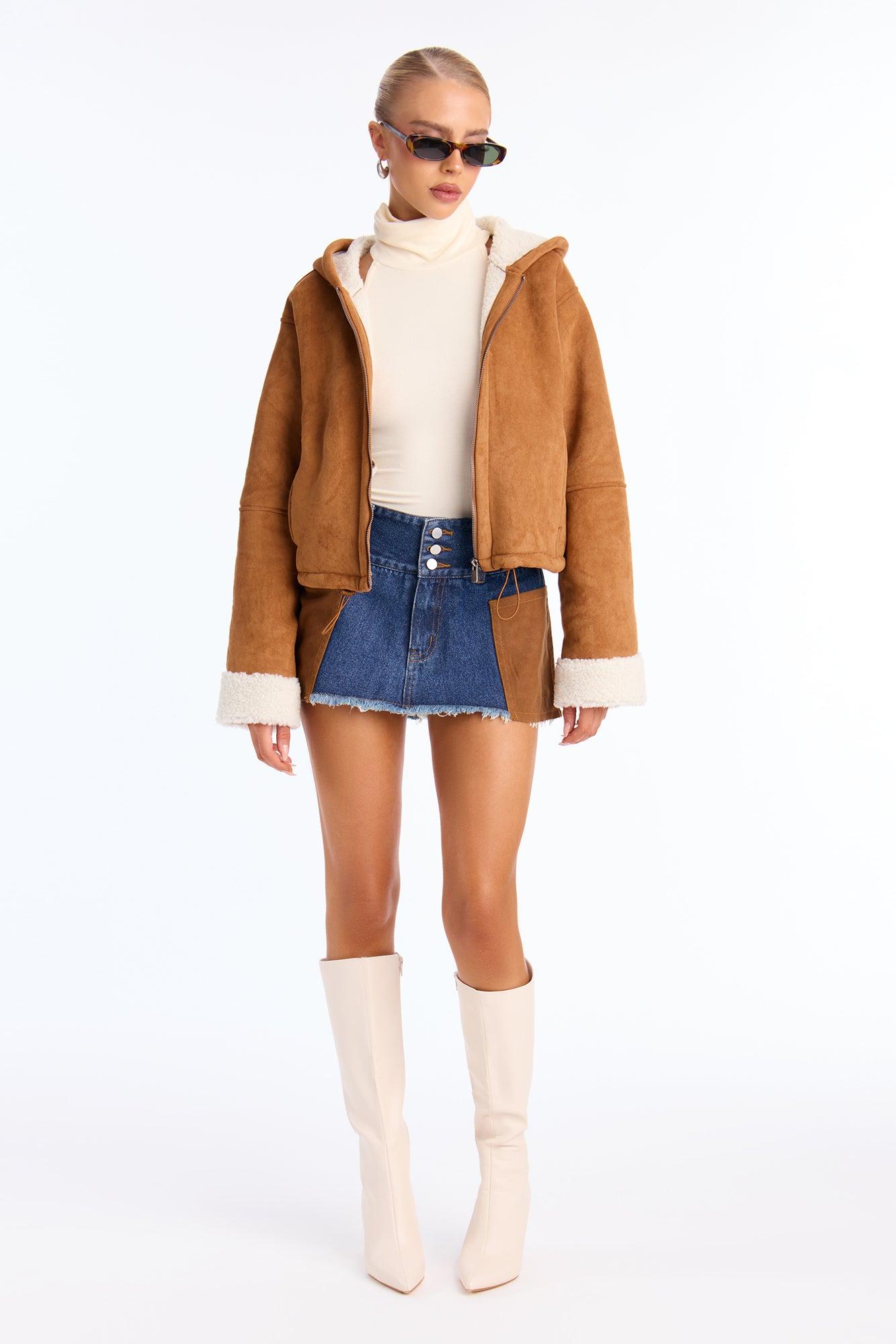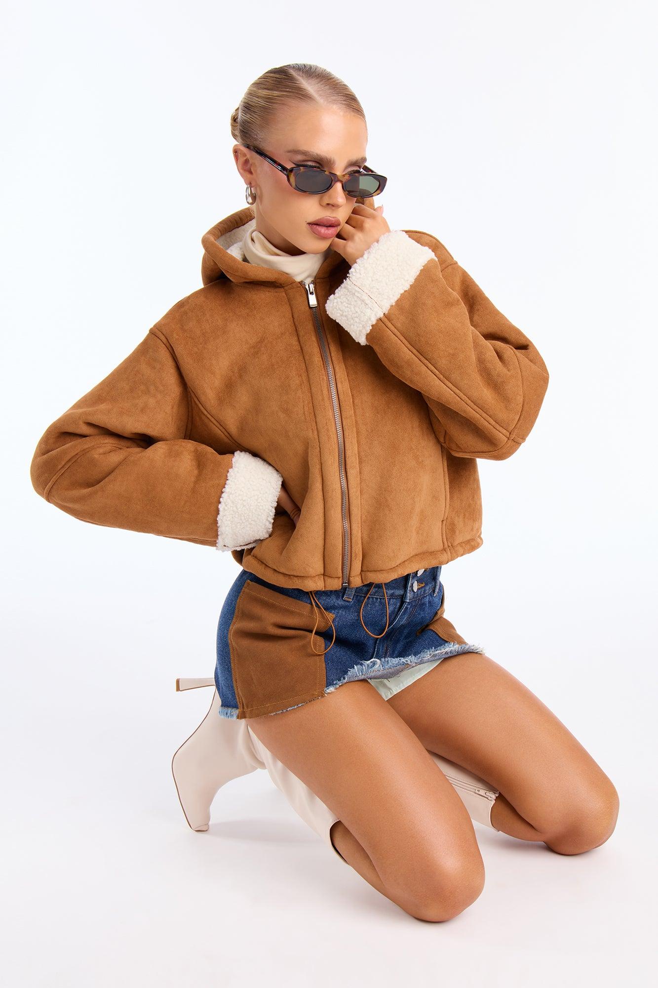 Eskimo Kiss Faux Suede Hooded Coat - Camel Female