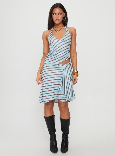 Esmeray Midi Skirt Blue Stripe