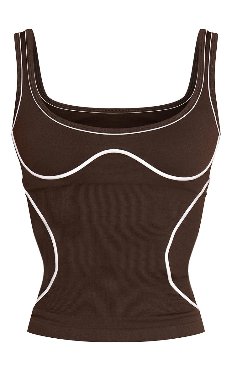 Define your active edit with the espresso marl seamless contrast seam gym vest. This espresso vest features a scoop neckline and artful white contrast piping. Ideal for focused workouts or effortlessly chic day adventures. Team with matching leggings, an oversized shirt, and elevate the look with black heels and a minimalist black shoulder bag.Length approx 48.5cm/19inch (Based on sample size S)Model wears size SModel Height - 5ft 10inchp]:!mb-4inch>Brand: PrettyLittleThingCategory: AthleisureProduct type: TankColor: EspressoMaterial: SeamlessOccasion: Day