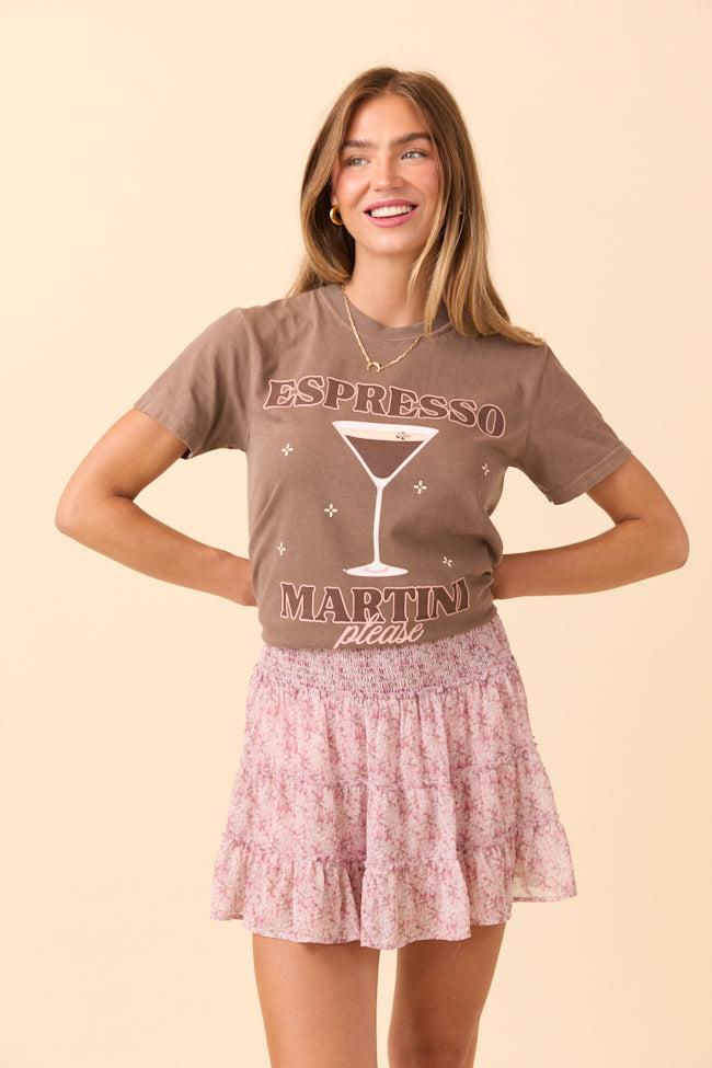 Details Brown t-shirt with espresso martini drink design Crew neckline Short sleeves Material and Care Comfort Color Tee 100% cotton For best results, wash inside out on a gentle cycle with cold or lukewarm water. Tumble dry low or hang to dry to keep your tee looking fab! Size and Fit Size Small approximate measurements. Relaxed fit, size up 2 sizes for oversized fit Chest Width: 17.25” Body Length: 25.6”