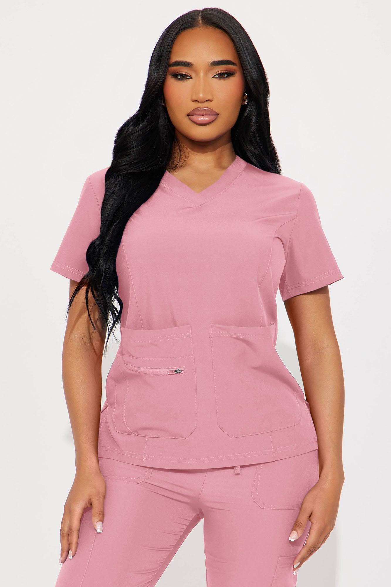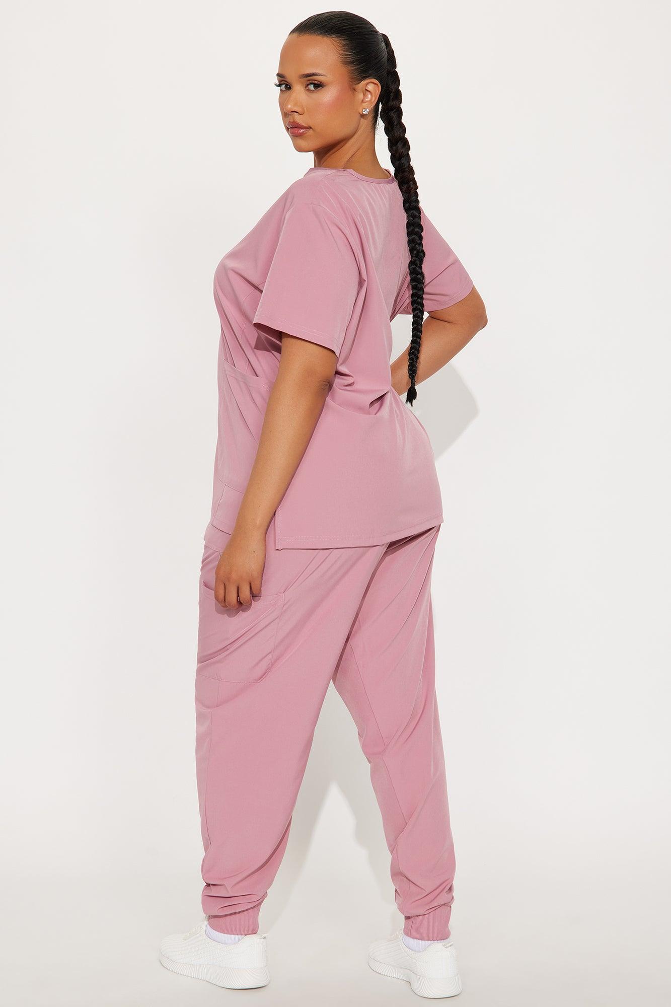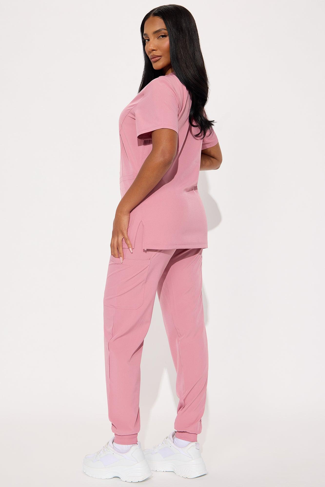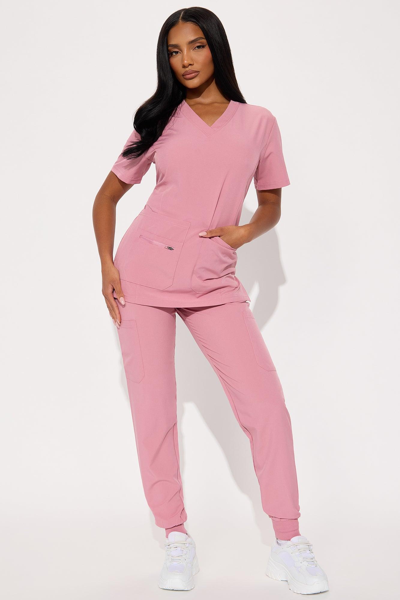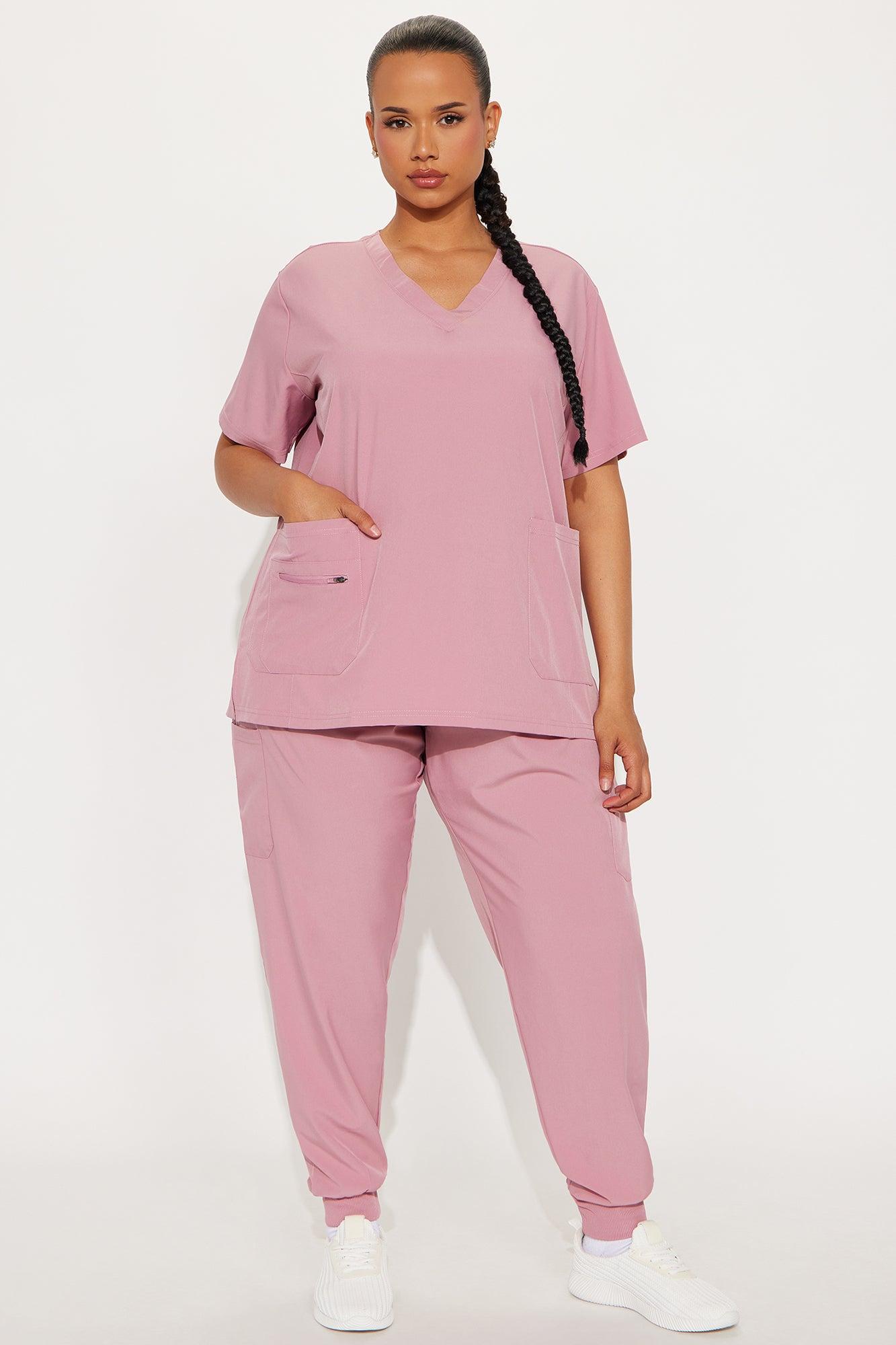 Available In Mauve And Charcoal. Uniform Scrub Set Short Sleeve Top V Neck Side Seams, Side Slits Double Front Patch Pocket Zipper Storage Pocket Matching Jogger Pants Elastic Waistband Drawstring Front And Side Pockets Jogger Cuff Stretch Self: 93% Polyester 7% Spandex Imported California Proposition 65WARNING: Cancer and Reproductive Harm - www.P65Warnings.ca.gov.