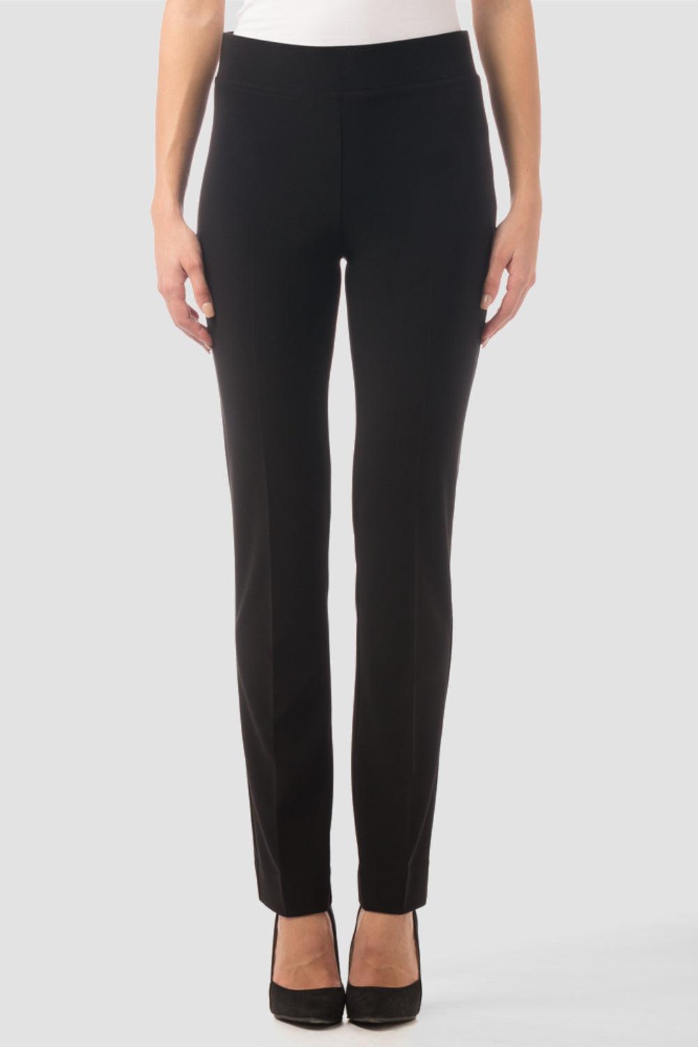 Sleek and sassy pant in a polyester and Spandex blend fabric. High elastic waist for a stylish fit. Gorgeous cut flatters waist and legs. No zipper. Hem falls at the ankle. Pairs beautifully with tops, tunics, sweaters, and more. By Joseph Ribkoff.