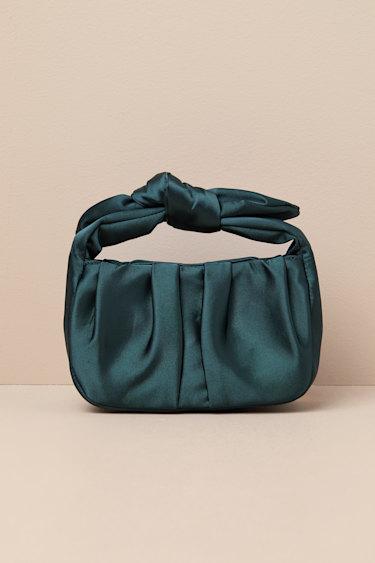 The Lulus Essential Style Emerald Green Satin Knot Handle Clutch Bag is the must-have accessory of the season! This cute bag is composed of sleek woven satin and shapes a flat bottom design, pleated accents, and a tying knot handle. Double magnetic closures open to a lined interior with a zippered sidewall pocket and enough room to carry your all-day essentials!