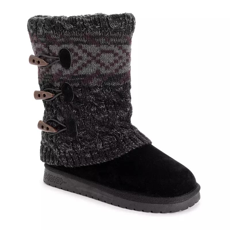 Step into style and comfort with these Essentials by MUK LUKS Cheryl women's winter boots. Click this FOOTWEAR GUIDE to find the perfect fit and more! - https://www.kohls.com/feature/shoesizeguide.jsp. SHOE FEATURES: Cozy sweater knit design, Soft faux-fur lining, Memory foam insole. SHOE CONSTRUCTION: Polyester upper, Faux fur lining, Foam midsole, TPR outsole. SHOE DETAILS: Round toe, Pull-on, Foam footbed, 0.75-in. heel, 9-in. shaft, 14.25-in. circumference. Size: 10 Wide. Color: Ebony Marl. Gender: female. Age Group: adult. Material: SYNTHETIC.