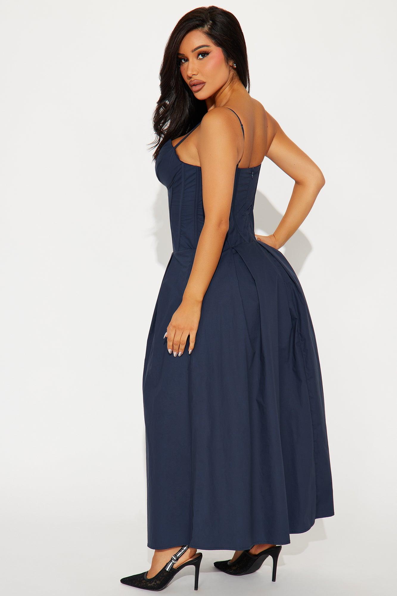 Estella Corset Poplin Midi Dress - Navy