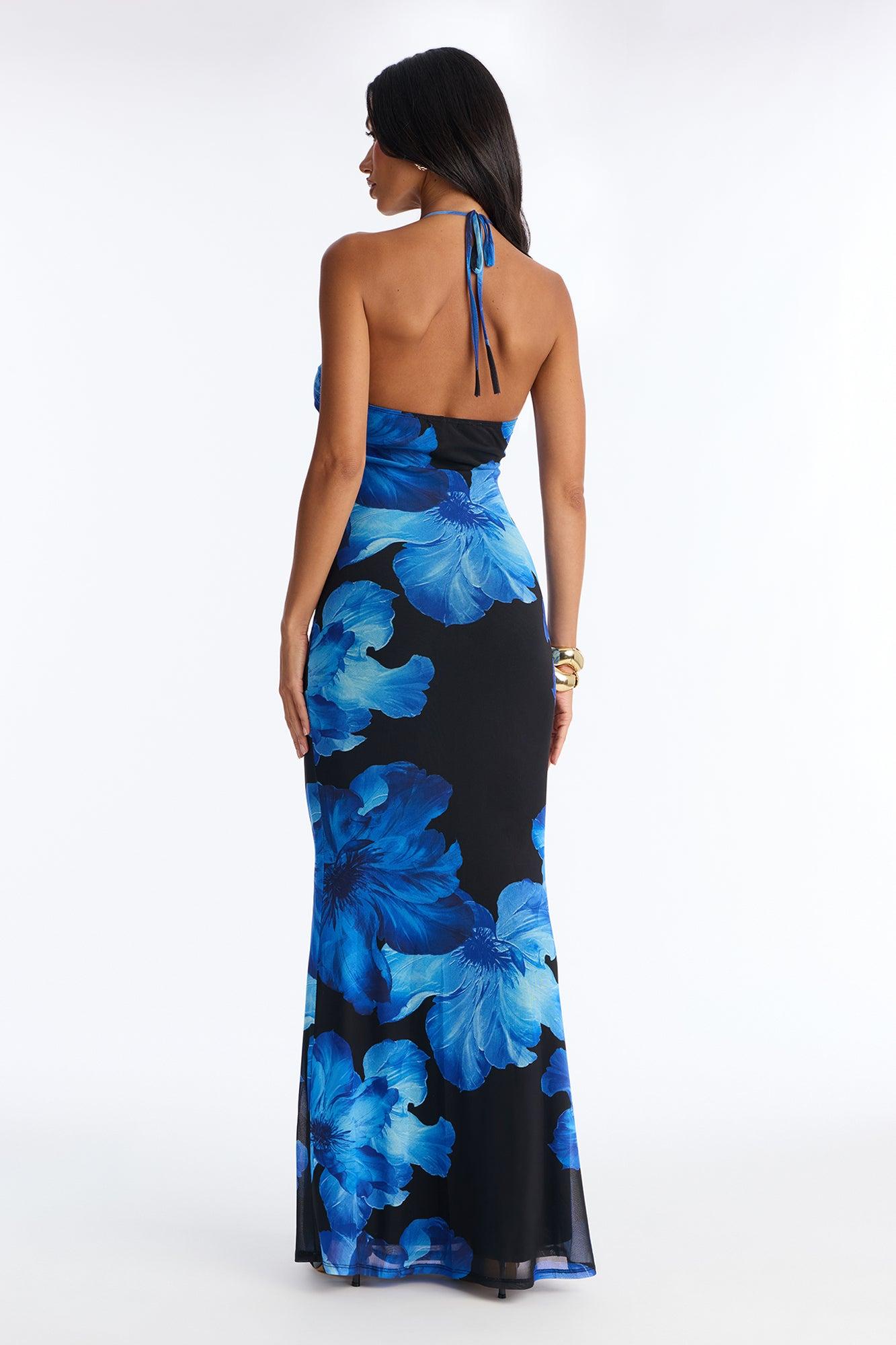 Estelle O Ring Halter Mesh Maxi Dress - Blue/combo Female