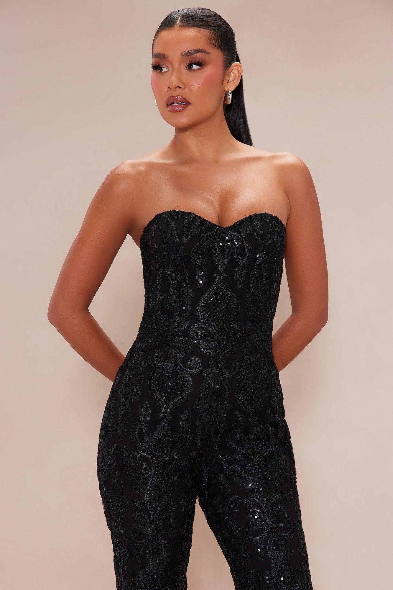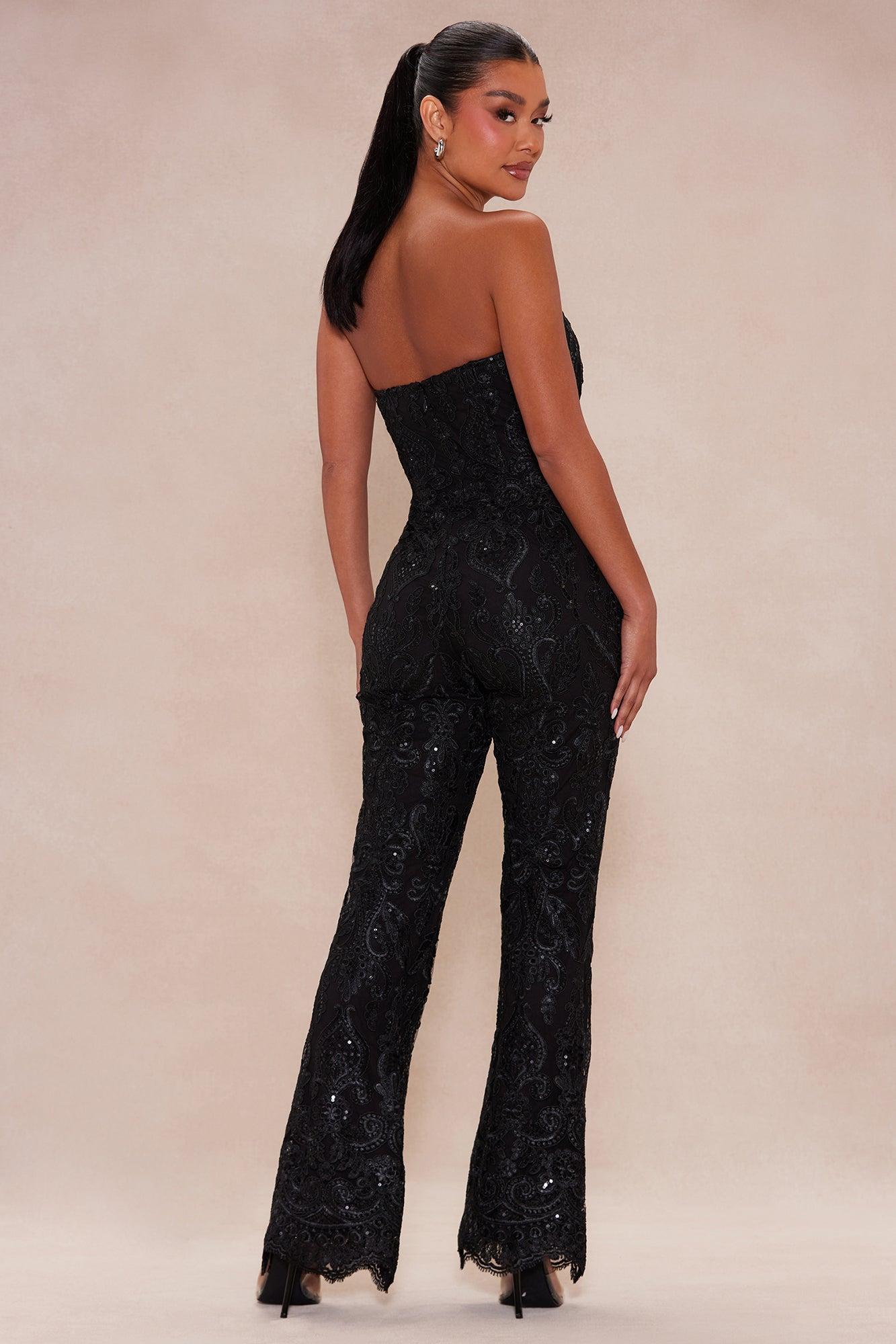 Esther Sequin Embroidered Jumpsuit - Black