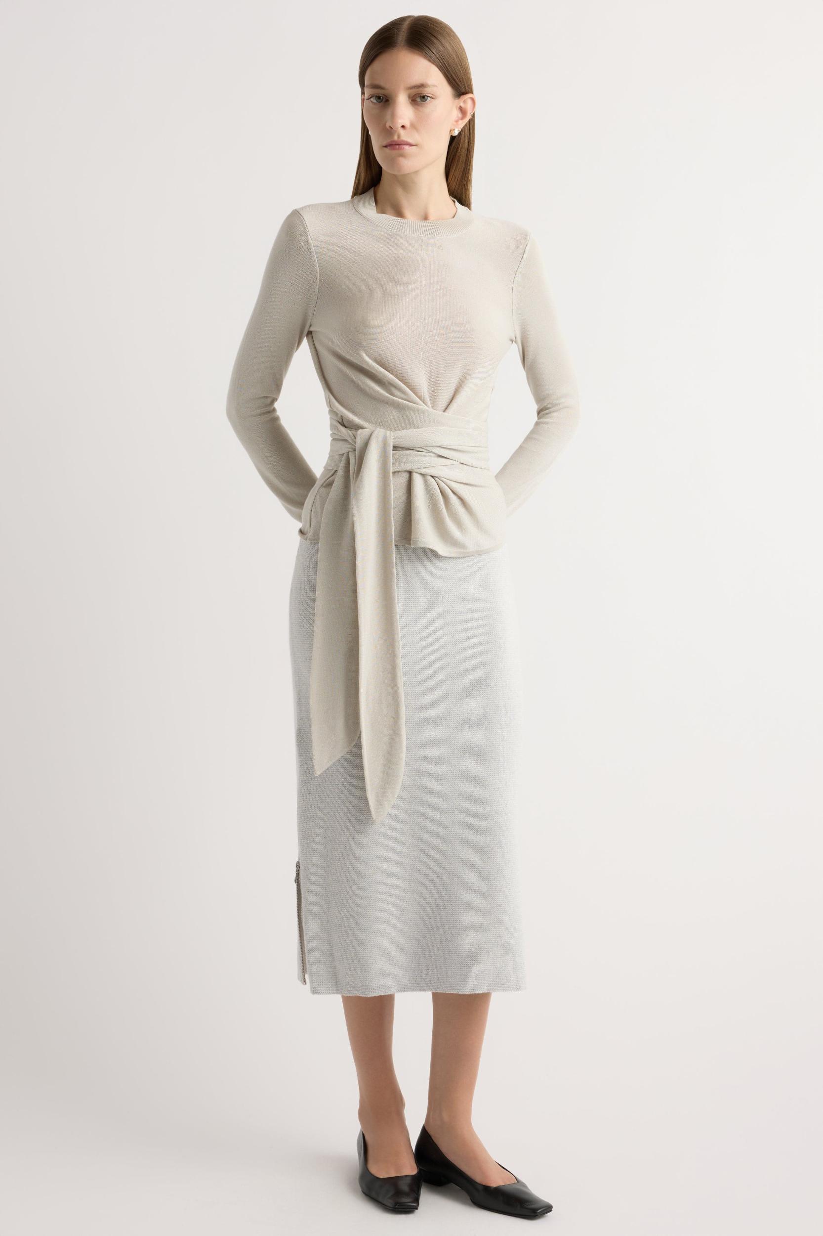 An updated and modern version of the knit skirt — made from a mid-weight cozy ribbed knit, Esti features adjustable side zippers for versatile styling.