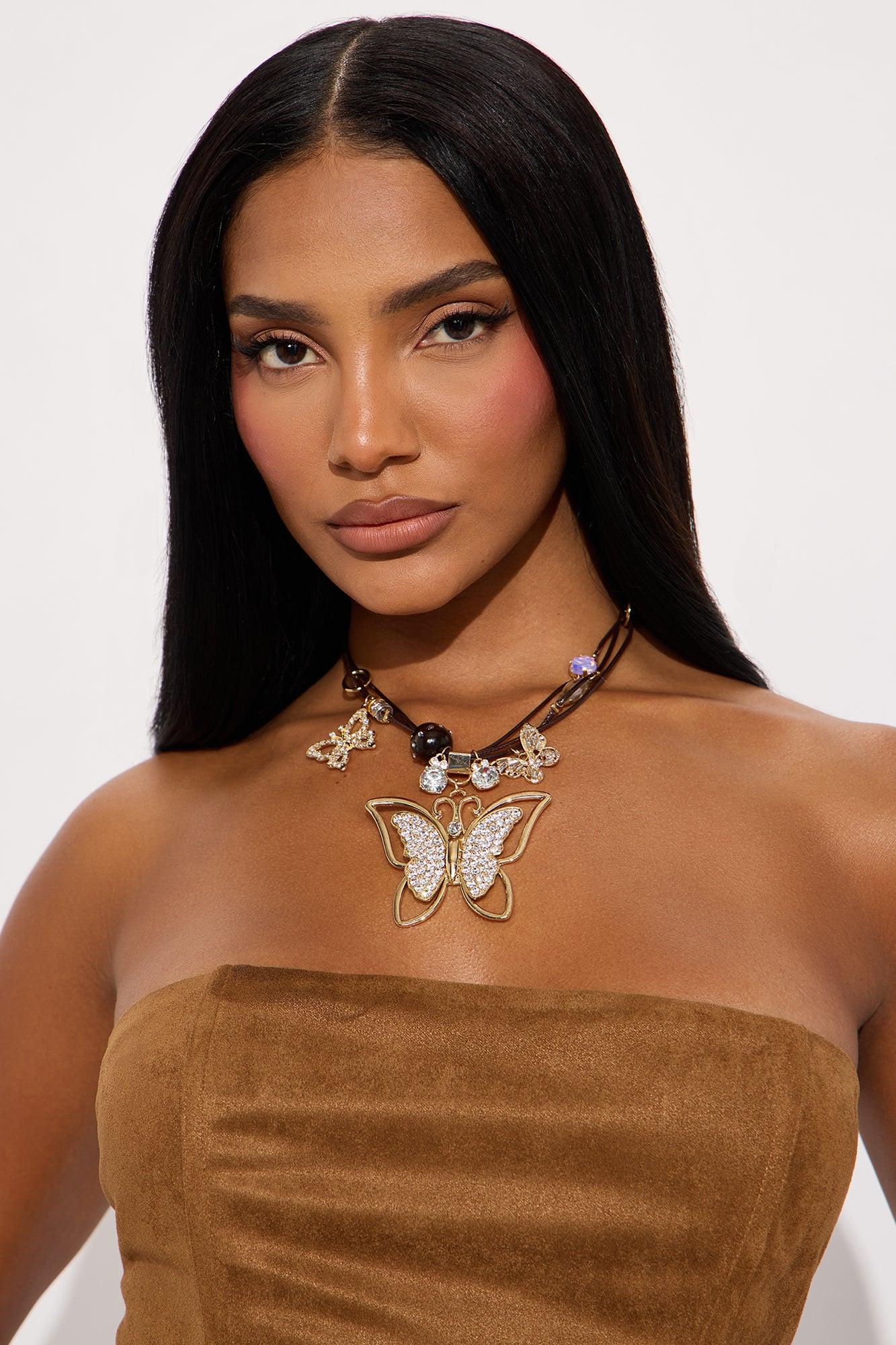 Eternal Butterfly Layered Necklace - Brown Combo Female
