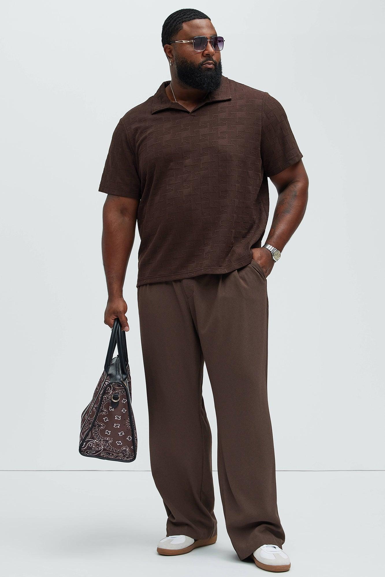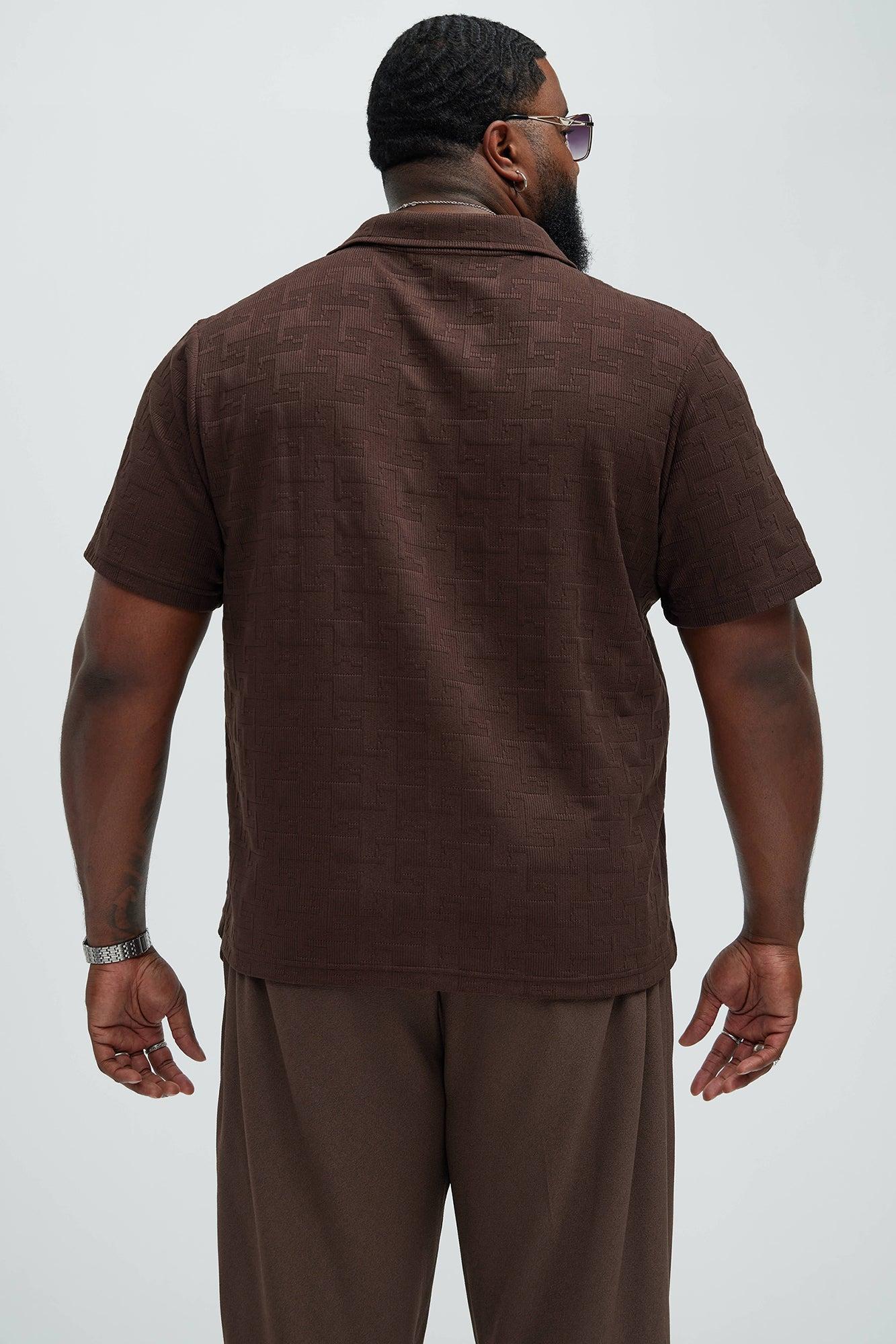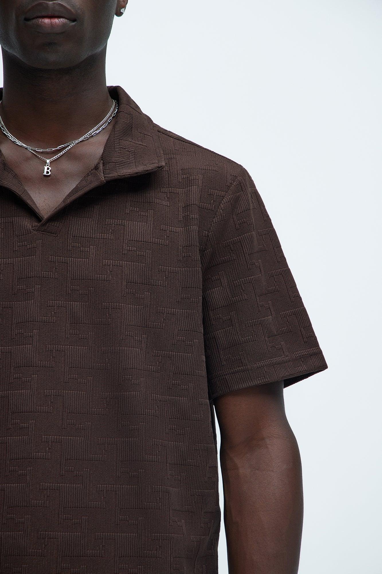 Ethel Textured Knit Johnny Collar Shirt - Brown
