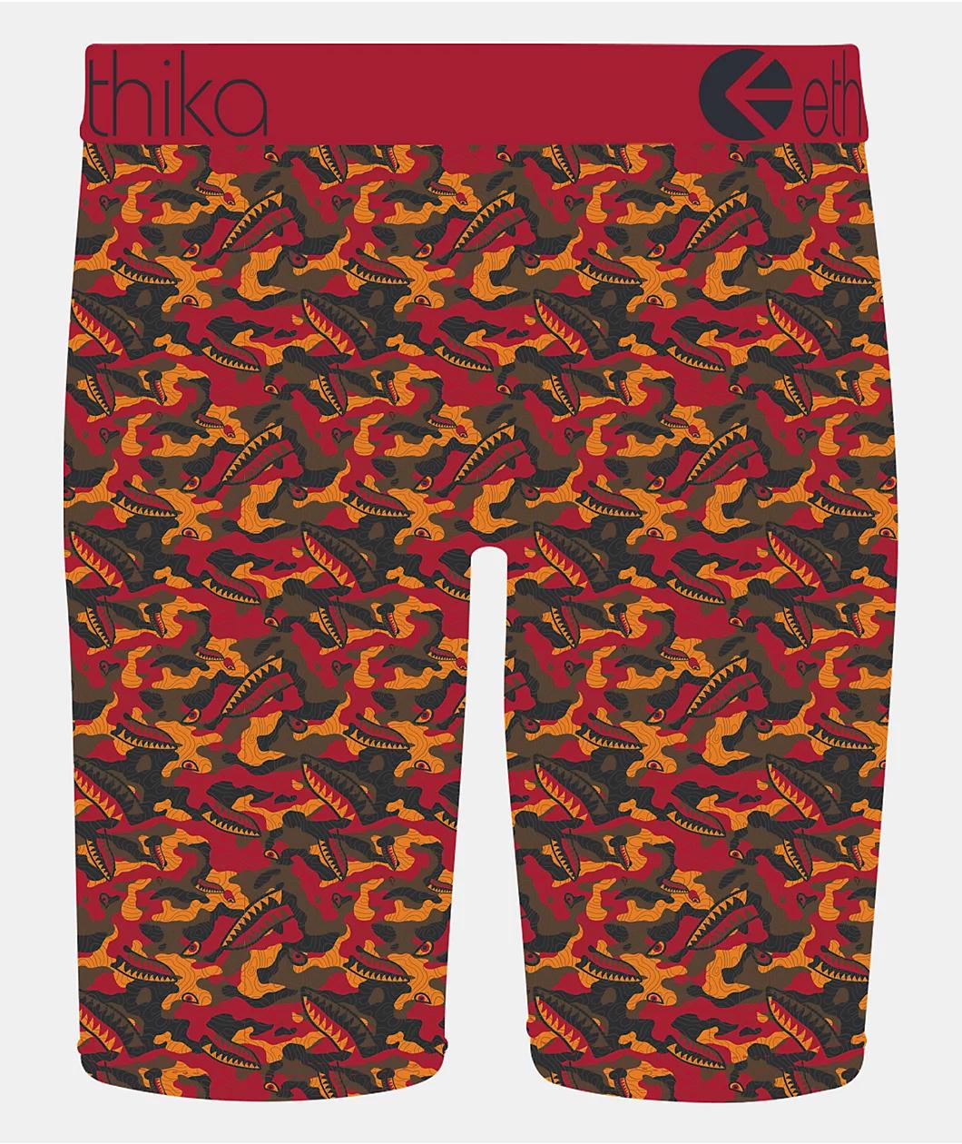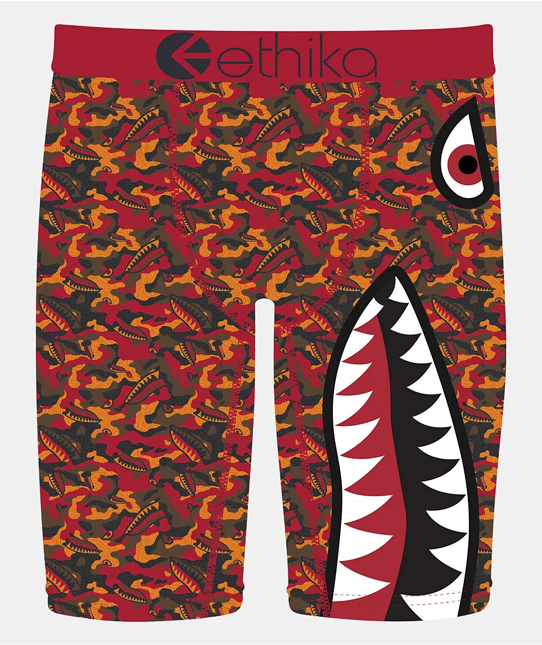 Ethika welcomes the Bomber Topo boxer briefs in a stretchy cotton blend with a sublimated pattern throughout and a printed, military-inspired Bomber shark mouth logo on the left leg. Boasting flatlock-stitched seams for added durability, the lightweight