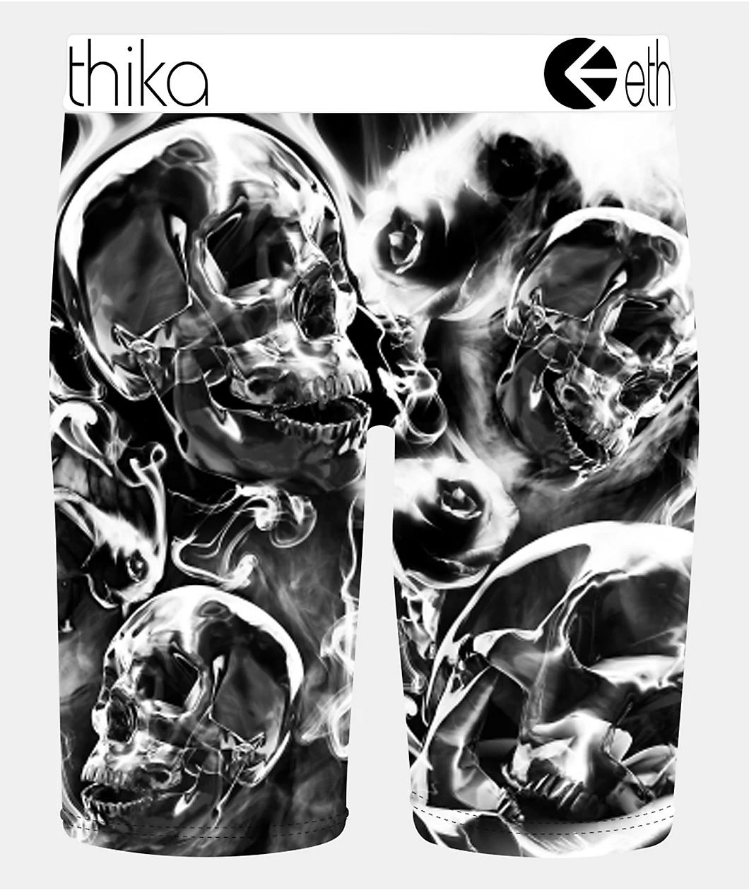 Ethika introduces the Perish Petal boxer briefs with edgy, sublimated graphics. Made with style in mind, discreetly adopt an alternative look through the eerie skulls and clouds of smoke printed throughout the underwear. These boxers have a thick bra