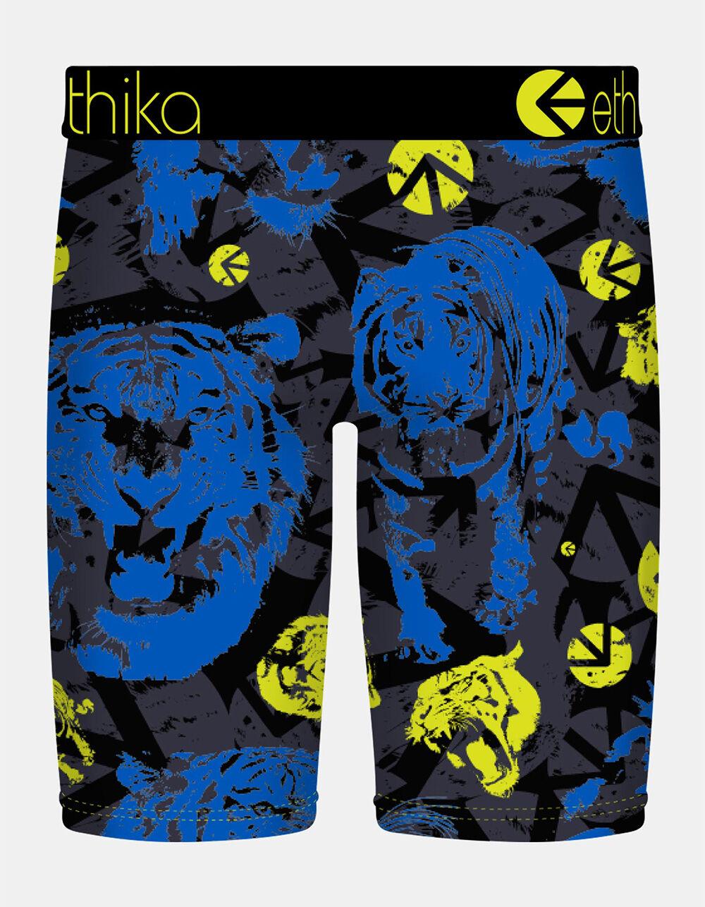 Ethika Tiger Fluid Staple Mens Boxer Briefs. No pull-down. No gathering. Soft 4-way stretch fabric. High quality jacquard waistband. 92% polyester 8% spandex. Machine wash. Imported.