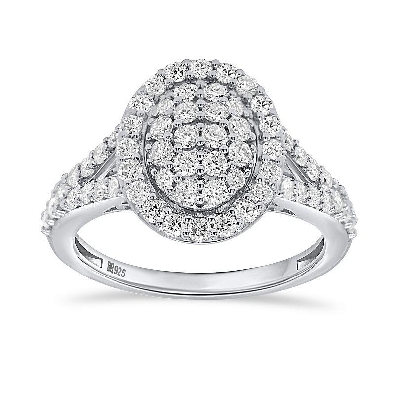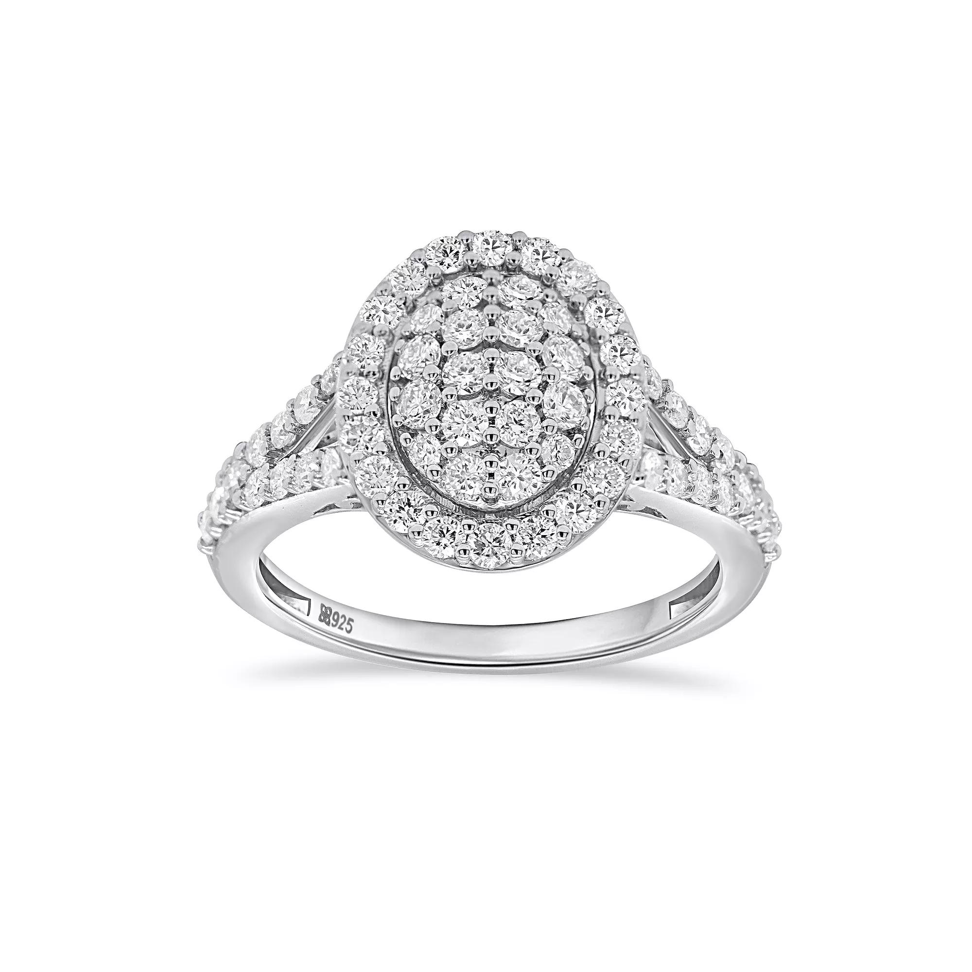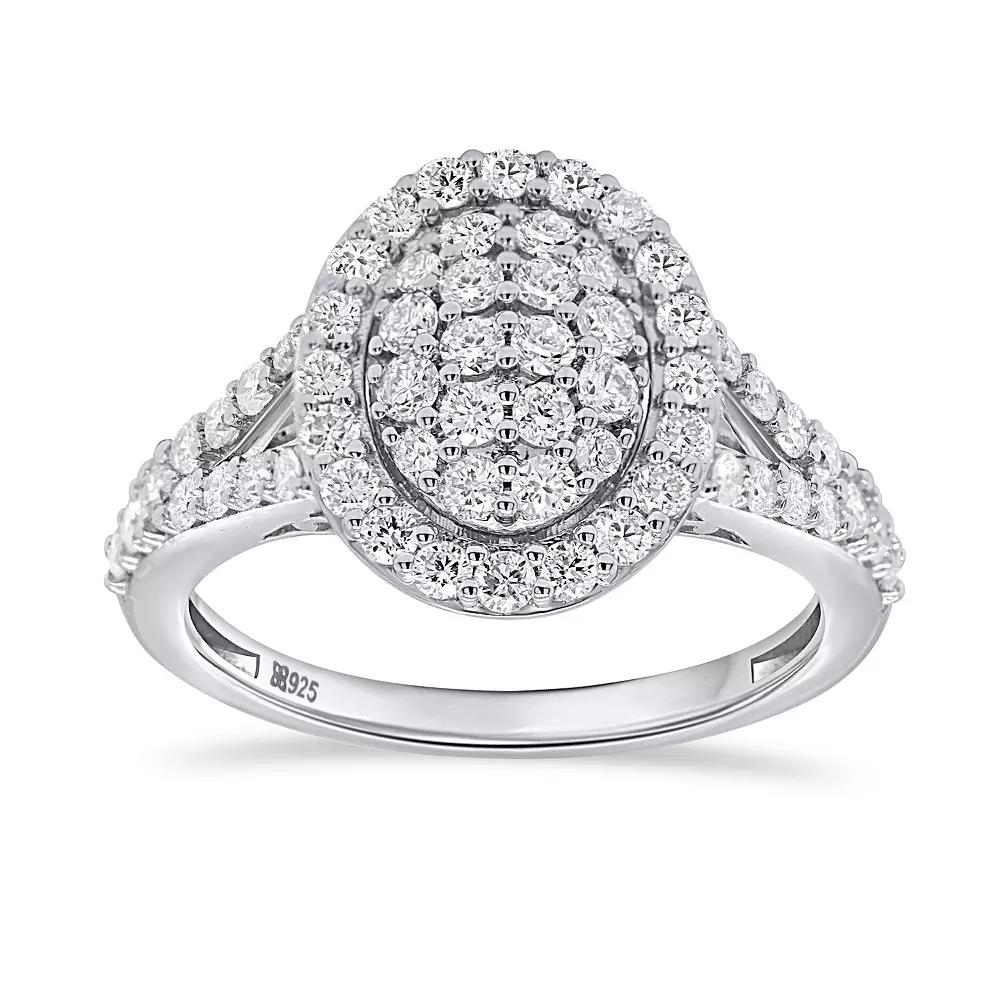 Ethique Sterling Silver 1 Carat T.W. Lab-Grown Diamond Oval Cluster Ring, Women's,