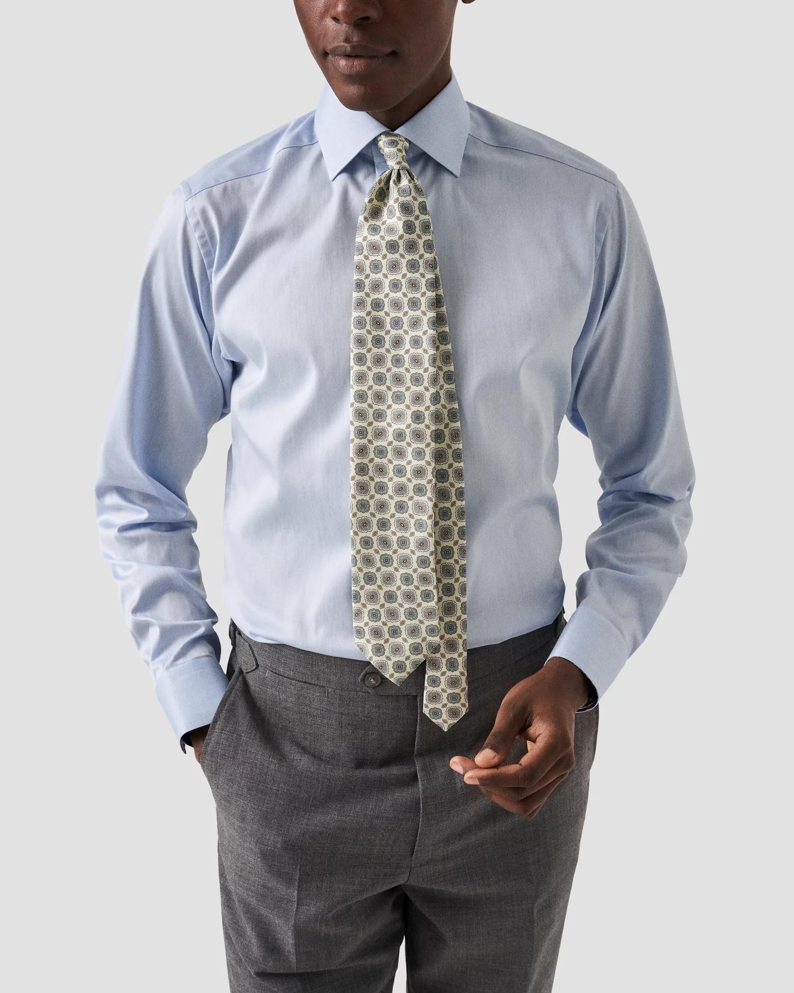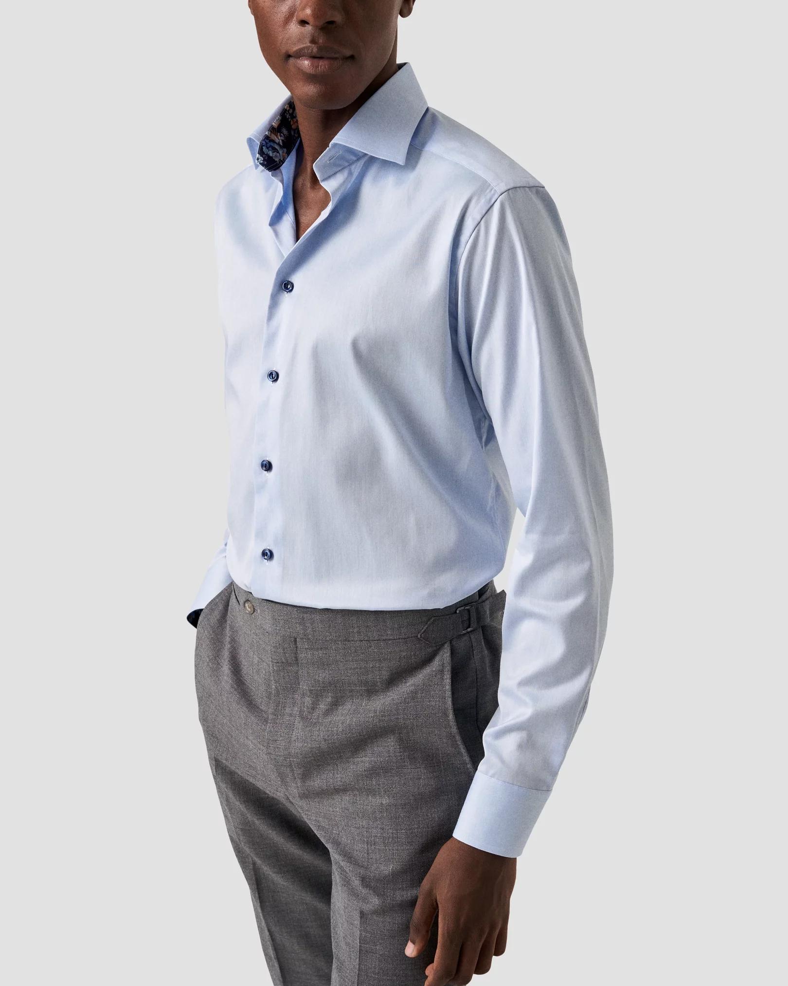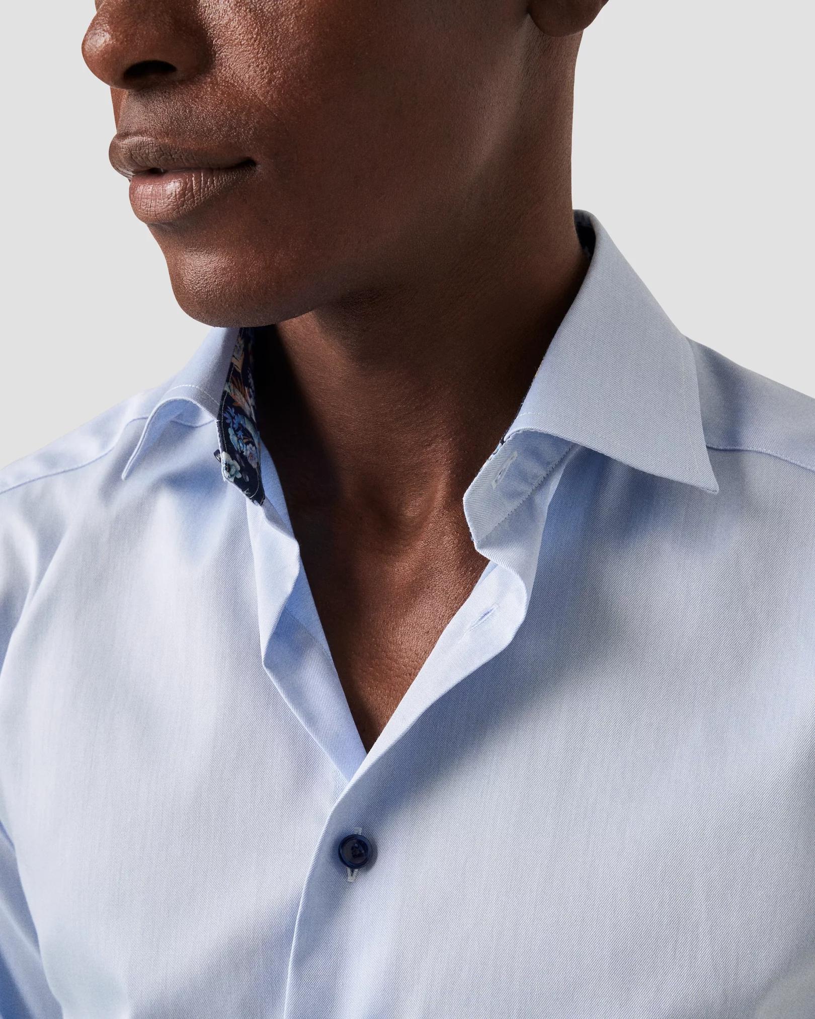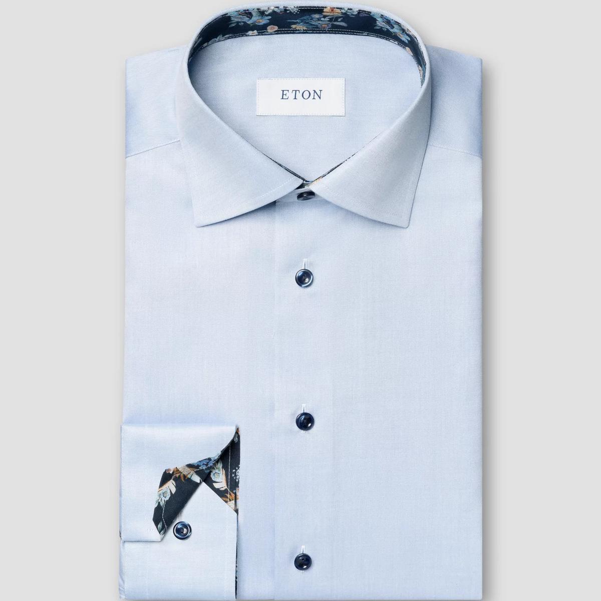 Upgrade your dress shirt game with the Eton Slim Fit Dress Shirt. Made with 100% organic cotton and featuring our popular Signature Twill fabric, this shirt offers fine texture, added comfort, and outstanding crease resistance. Its timeless style is elevated with a navy floral pattern inside the collar and cuffs and sharp navy buttons. COLLAR Cut awayCUFF Single cuff FABRIC Signature TwillCOMPOSITION 100% Cotton ARTICLE NUMBER 100012118 00 100012118 21 100011092 29