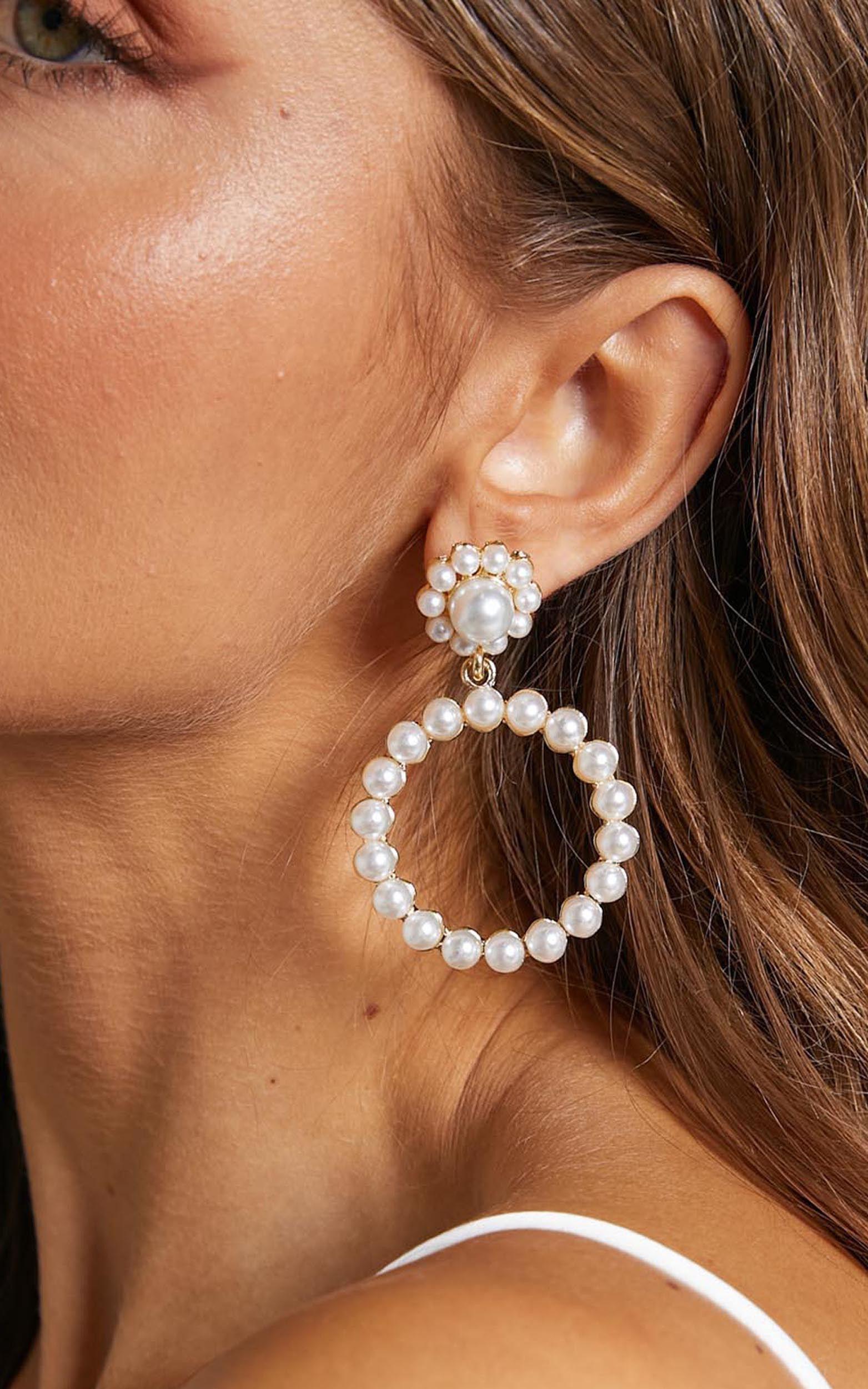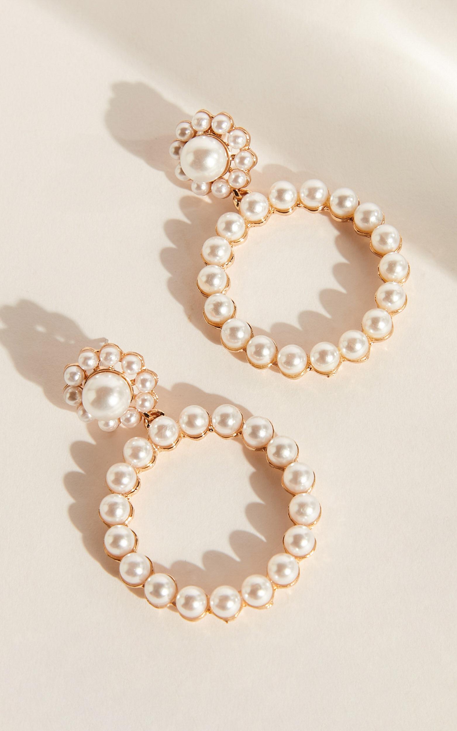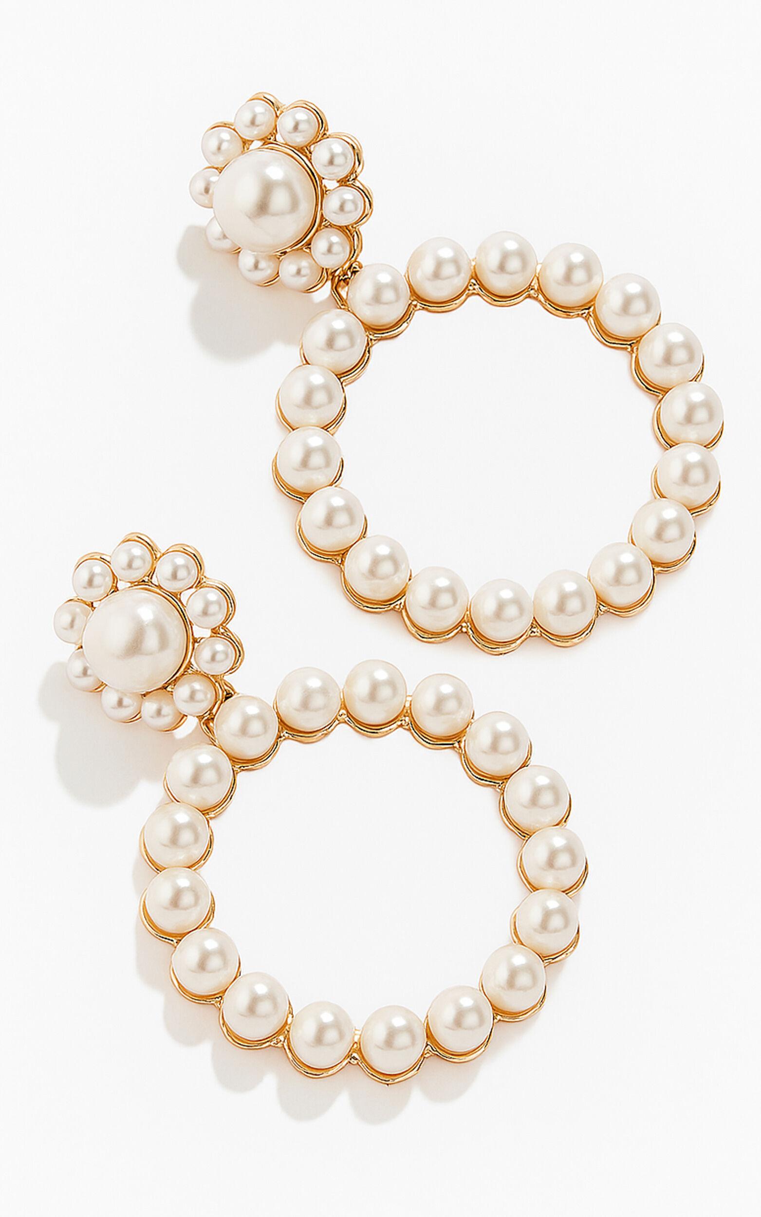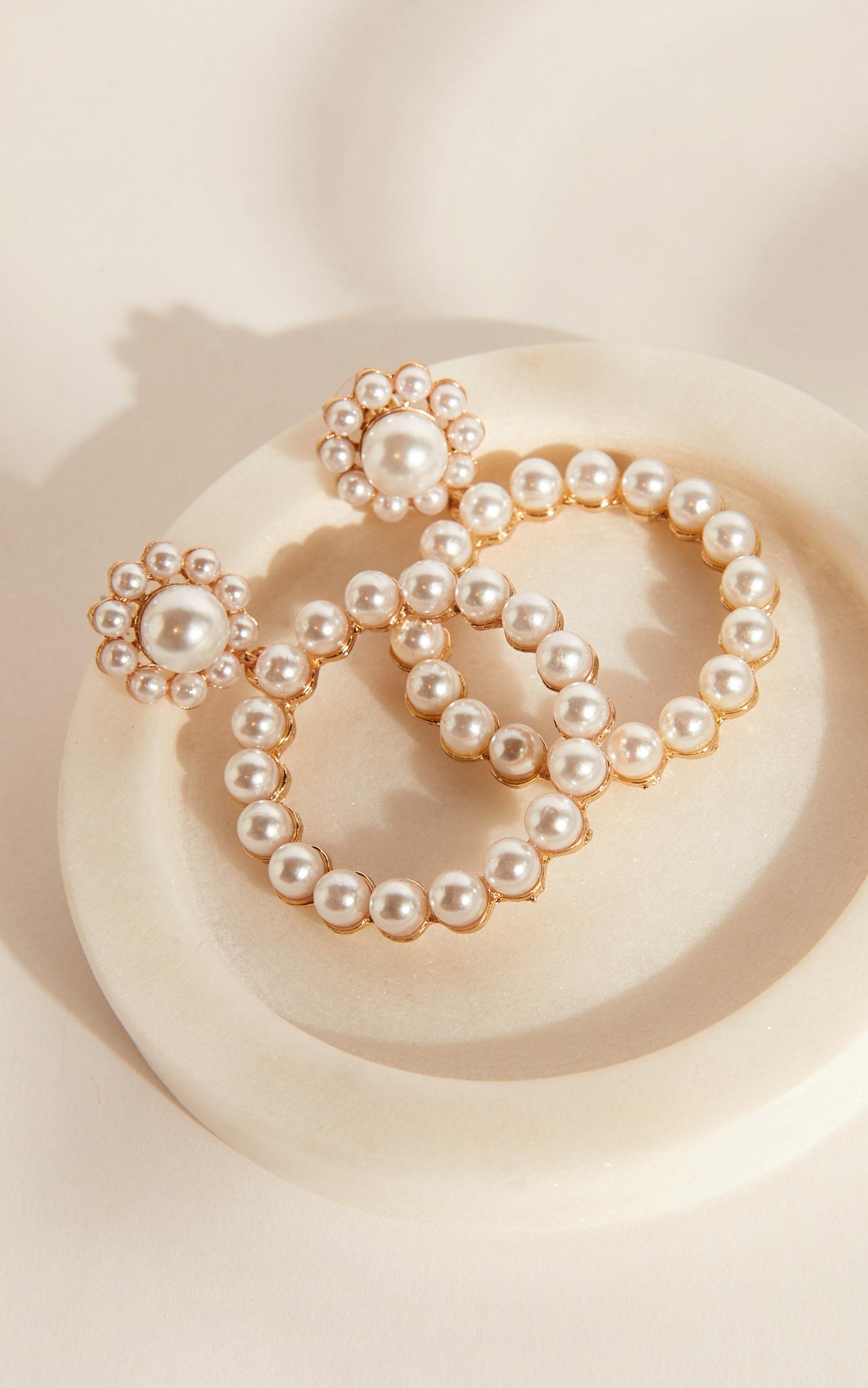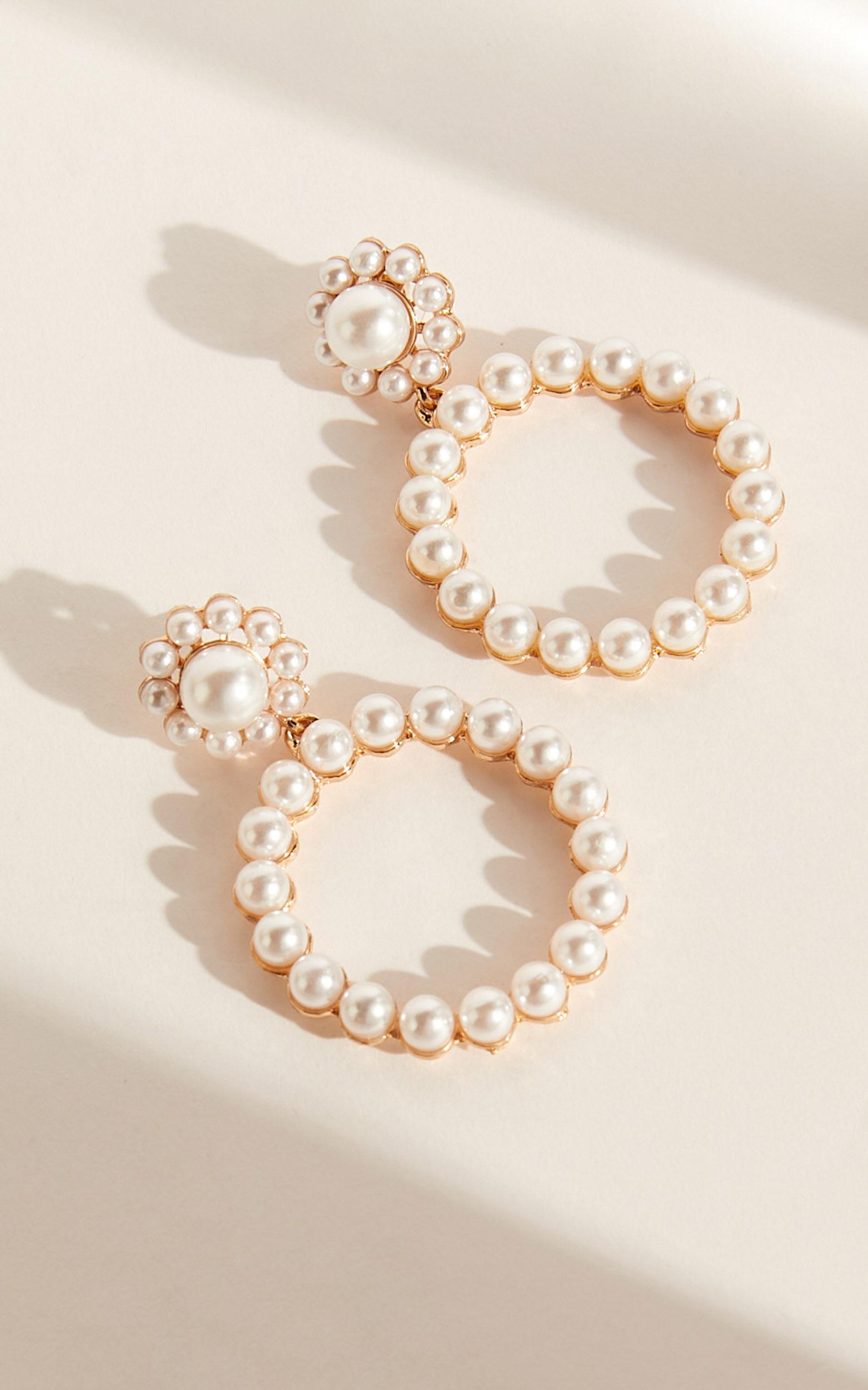 Round circle drop detail with faux pearlsGold-tone finish