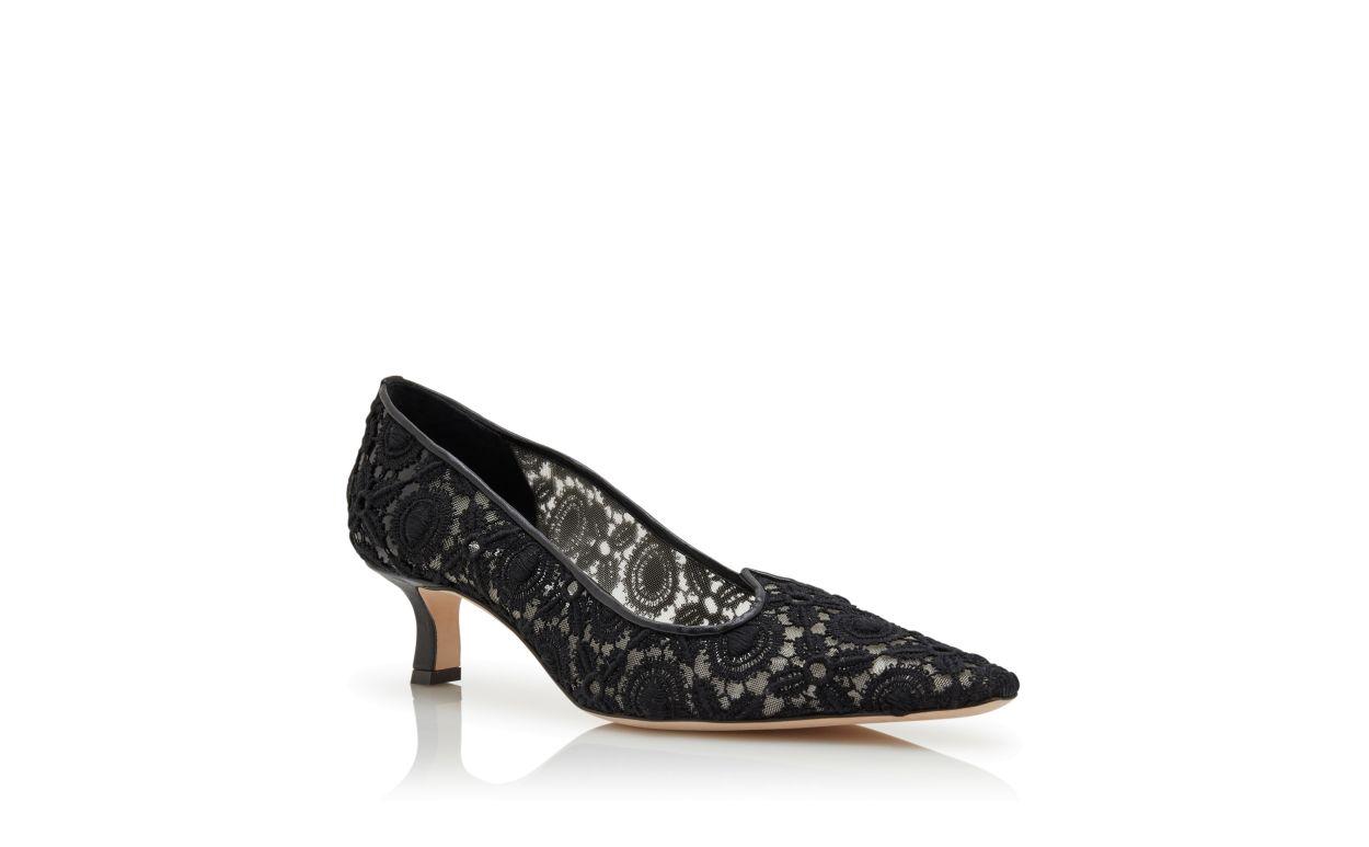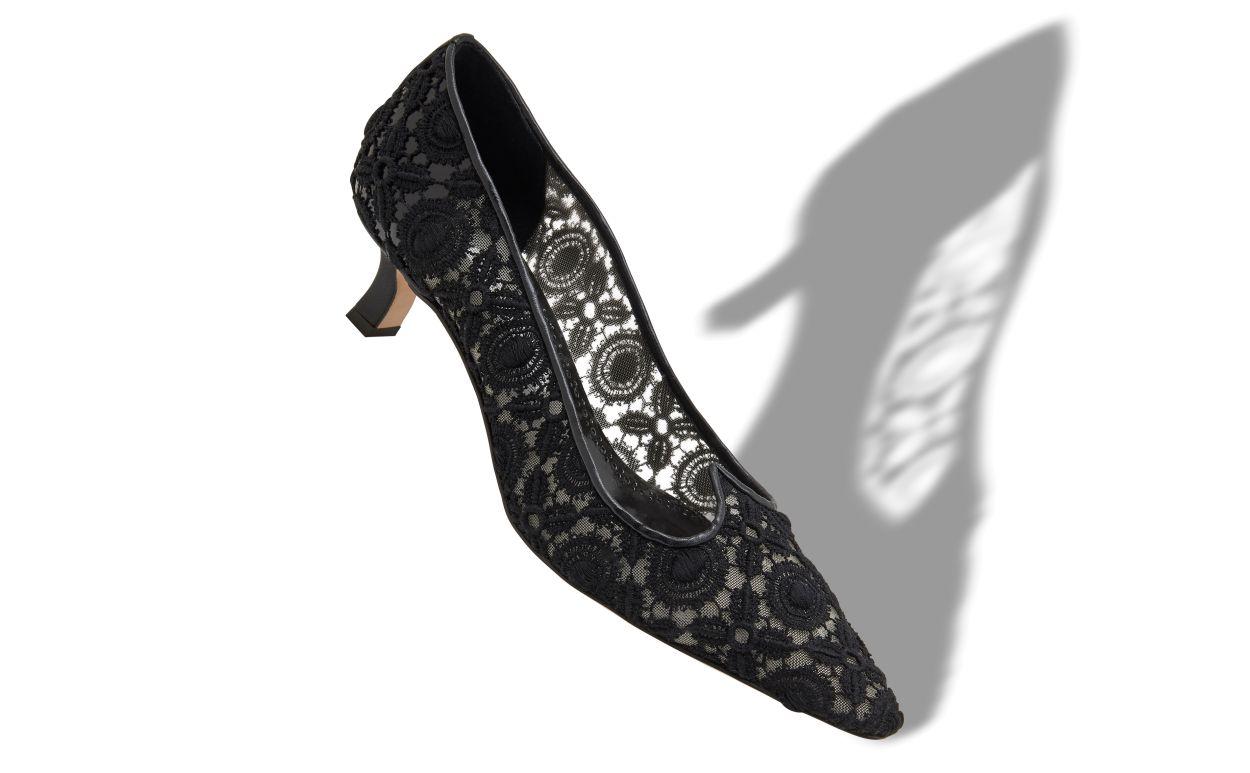 EURIDI Black Lace Pointed Toe Pumps