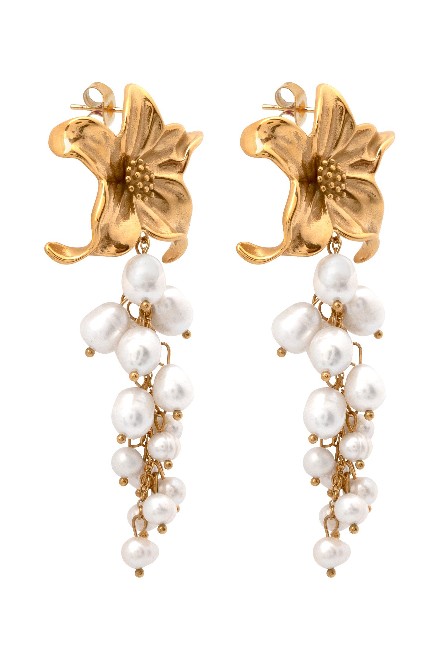 Pearly perfection. The EVA Floral Fresh Water Pearl Earrings are a stunning combination of nature-inspired design and timeless elegance. Featuring an organic metal flower motif, these earrings exude a delicate charm, while the drop pearl detail adds a touch of sophistication. The post studs and butterfly back closure ensure a secure and comfortable fit, making them perfect for both day and evening wear. Whether you're dressing up for a special occasion or adding a refined touch to your everyday style, these earrings bring a refined yet playful element to any look.