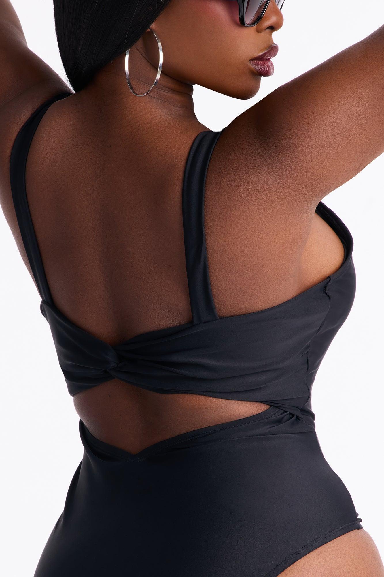 Available In Black. 1 Piece Swimsuit Wide Straps Removable Cups O-Ring Cut Out Back Knot Detail Bikini Bottom Cheeky Full Stretch Final Sale Self : 80% Nylon 20% Spandex Lining : 95% Polyester 5% Spandex Imported